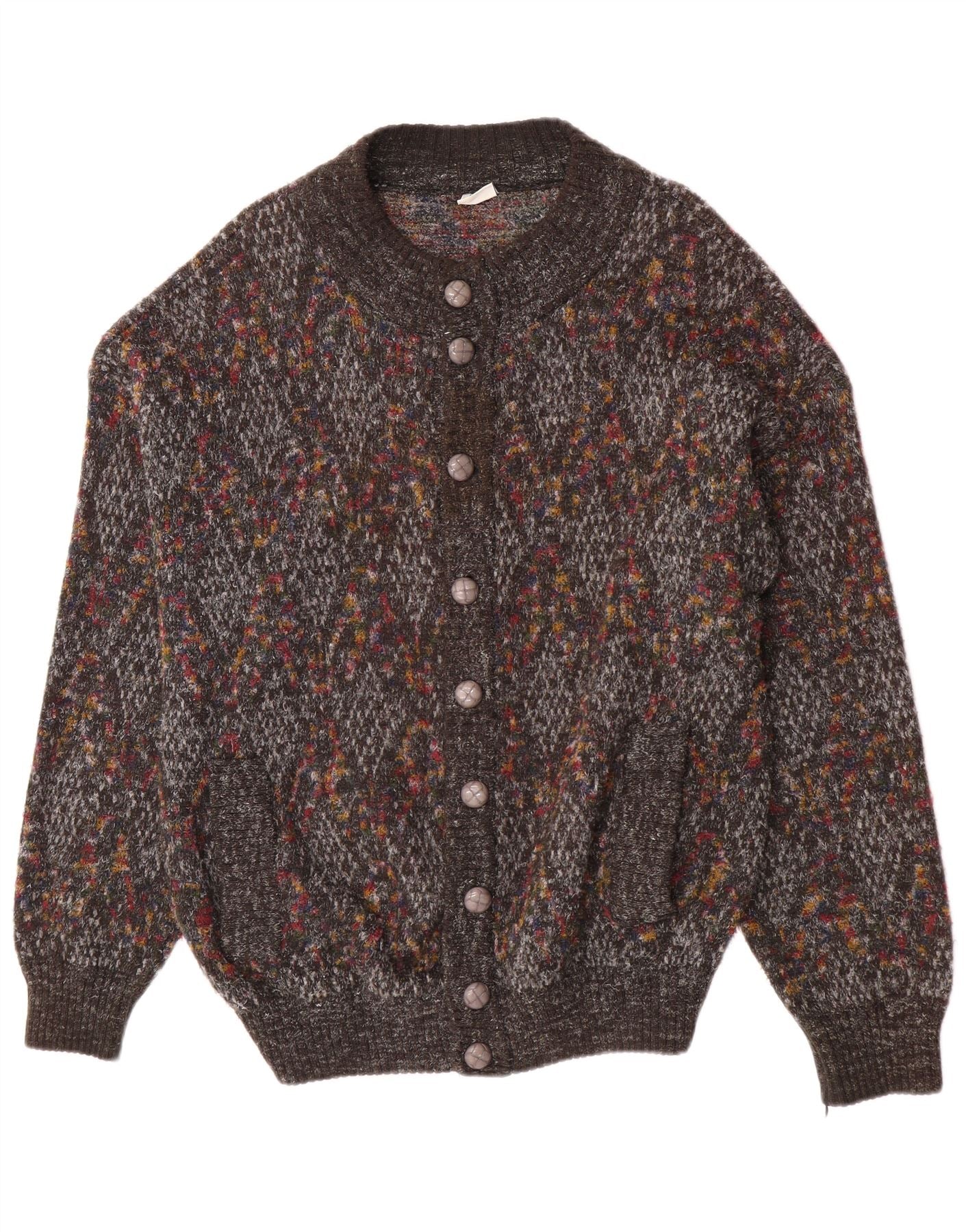 - Descripción de IA: Este suéter tipo cárdigan para hombre de Pimet está confeccionado con una cómoda mezcla de punto de lana, acrílico y poliamida. Presenta una base gris con un patrón abstracto moteado distintivo en tonos multicolores. El cuello redondo y las mangas largas ofrecen una silueta clásica. Un frente completo con botones proporciona un estilo versátil. El ajuste regular garantiza comodidad y facilidad de uso. Los bolsillos sutiles añaden detalles prácticos. Esta pieza de estilo retro combina calidez con un atractivo visual único.