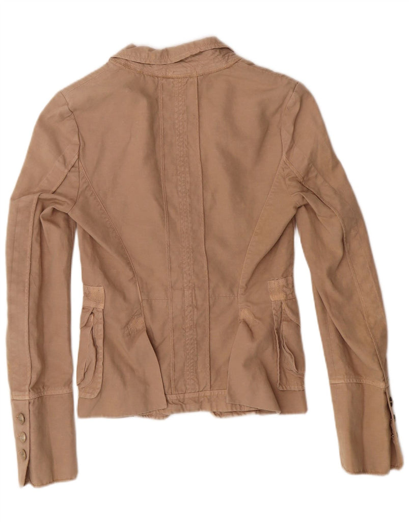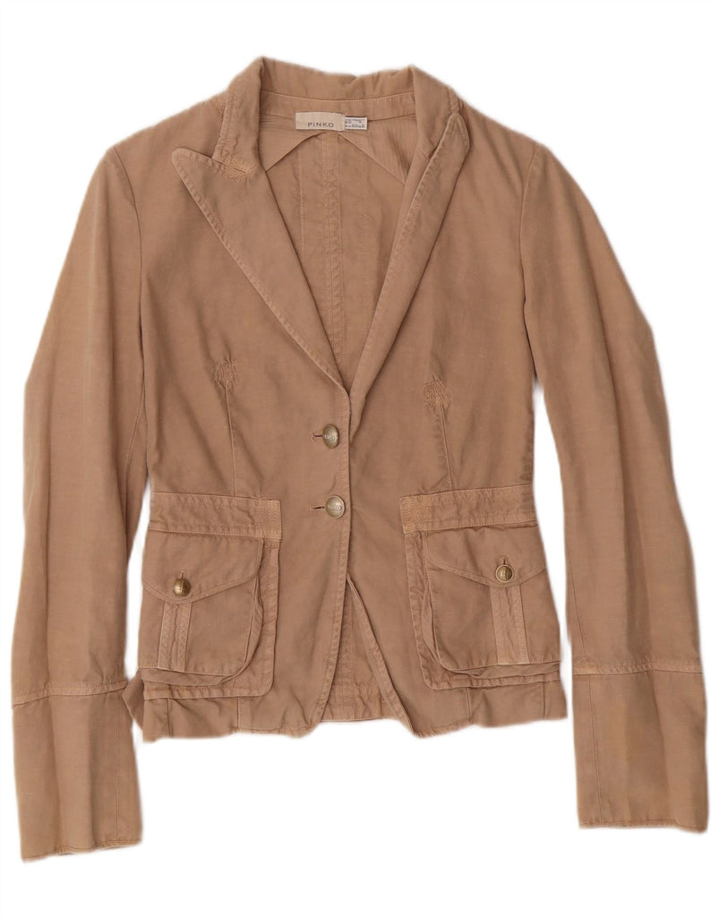 PINKO Chaqueta tipo blazer de 2 botones para mujer UK 8 Small Beige Cotton