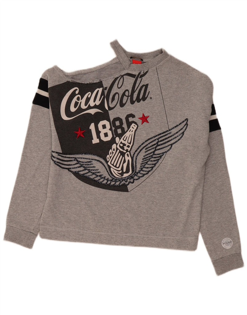 PINKO Womens Coca-Cola Graphic Oversized Sweatshirt Jumper UK 6 XS Grey