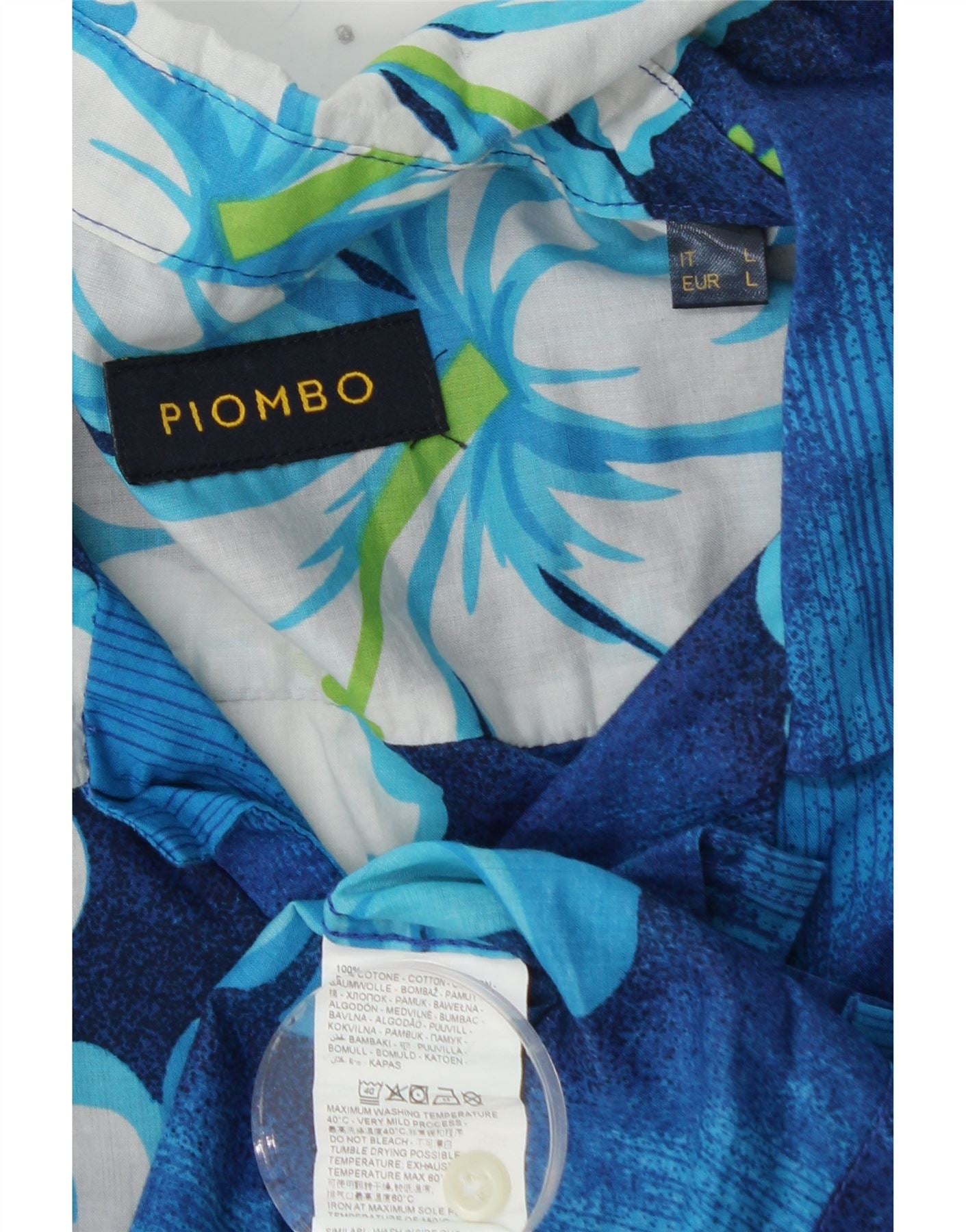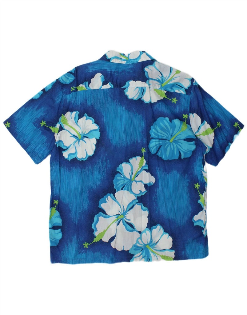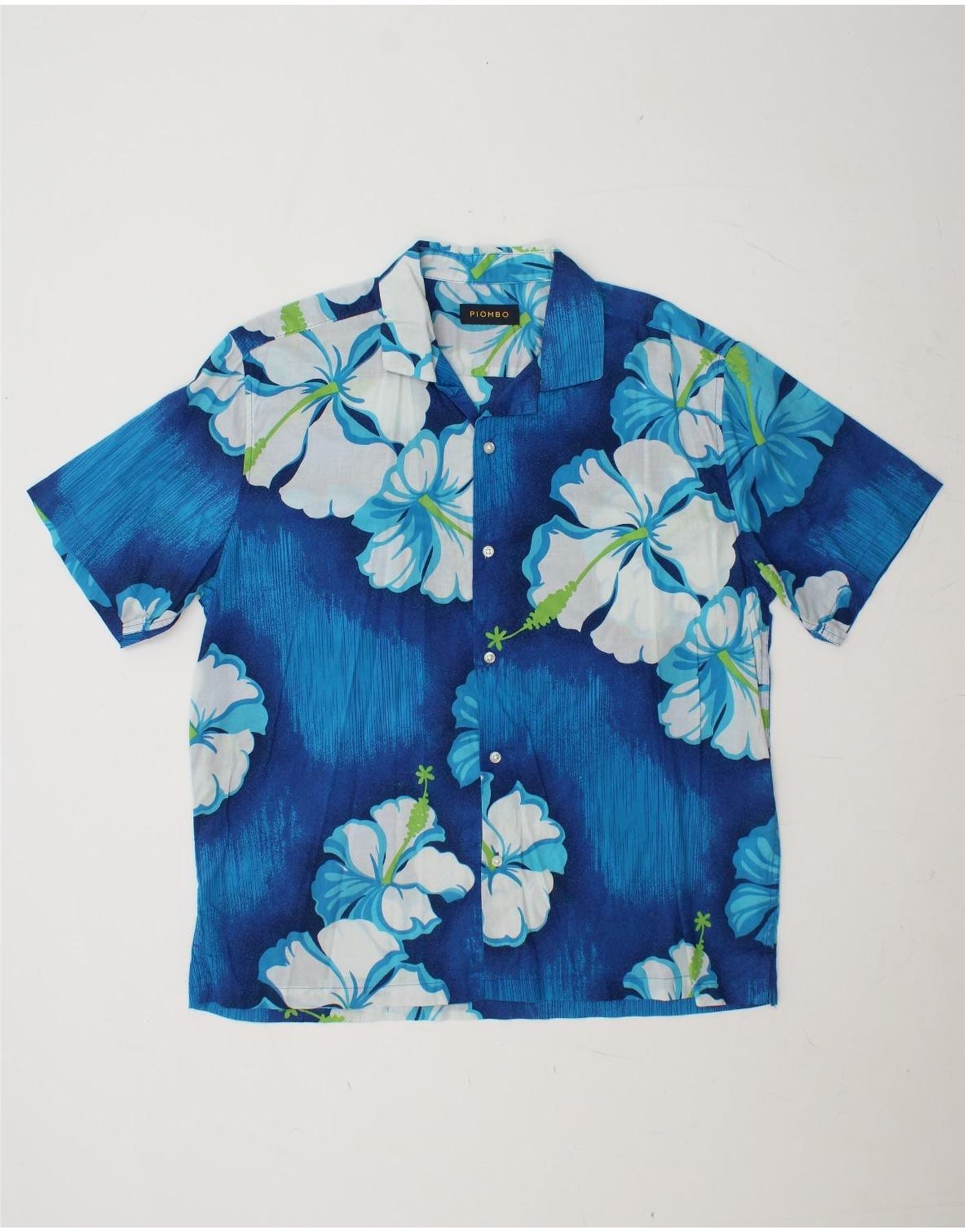 PIOMBO Camisa de manga corta para hombre de algodón floral azul grande