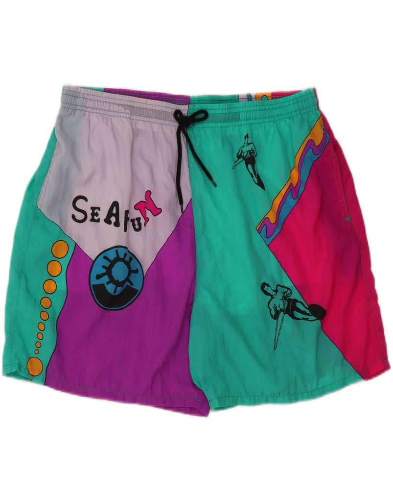 PLAYCREW Bañador con estampado gráfico para hombre, tamaño grande, bloque de color multicolor