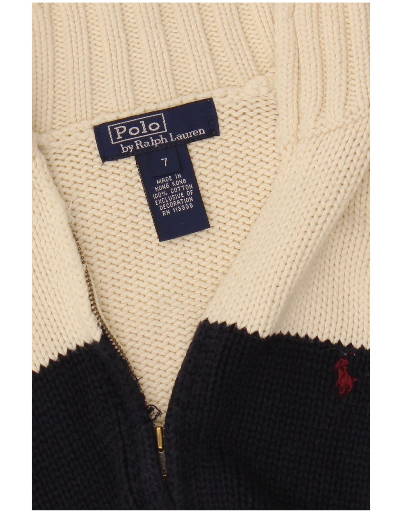 POLO RALPH LAUREN Boys Cardigan Sweater 6-7 Years White Colourblock Cotton