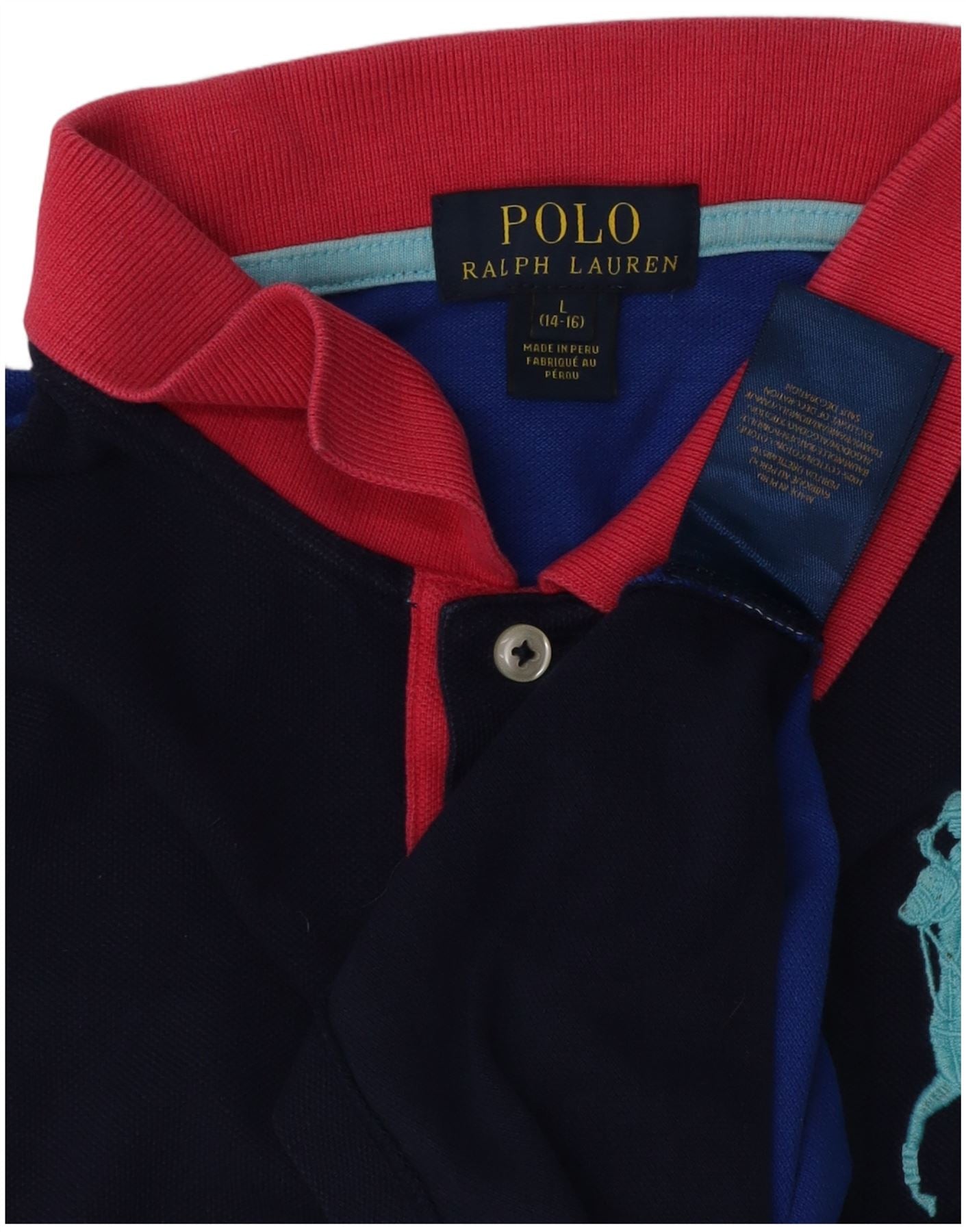 POLO RALPH LAUREN Boys Polo Shirt 14-15 Years Large Navy Blue Colourblock