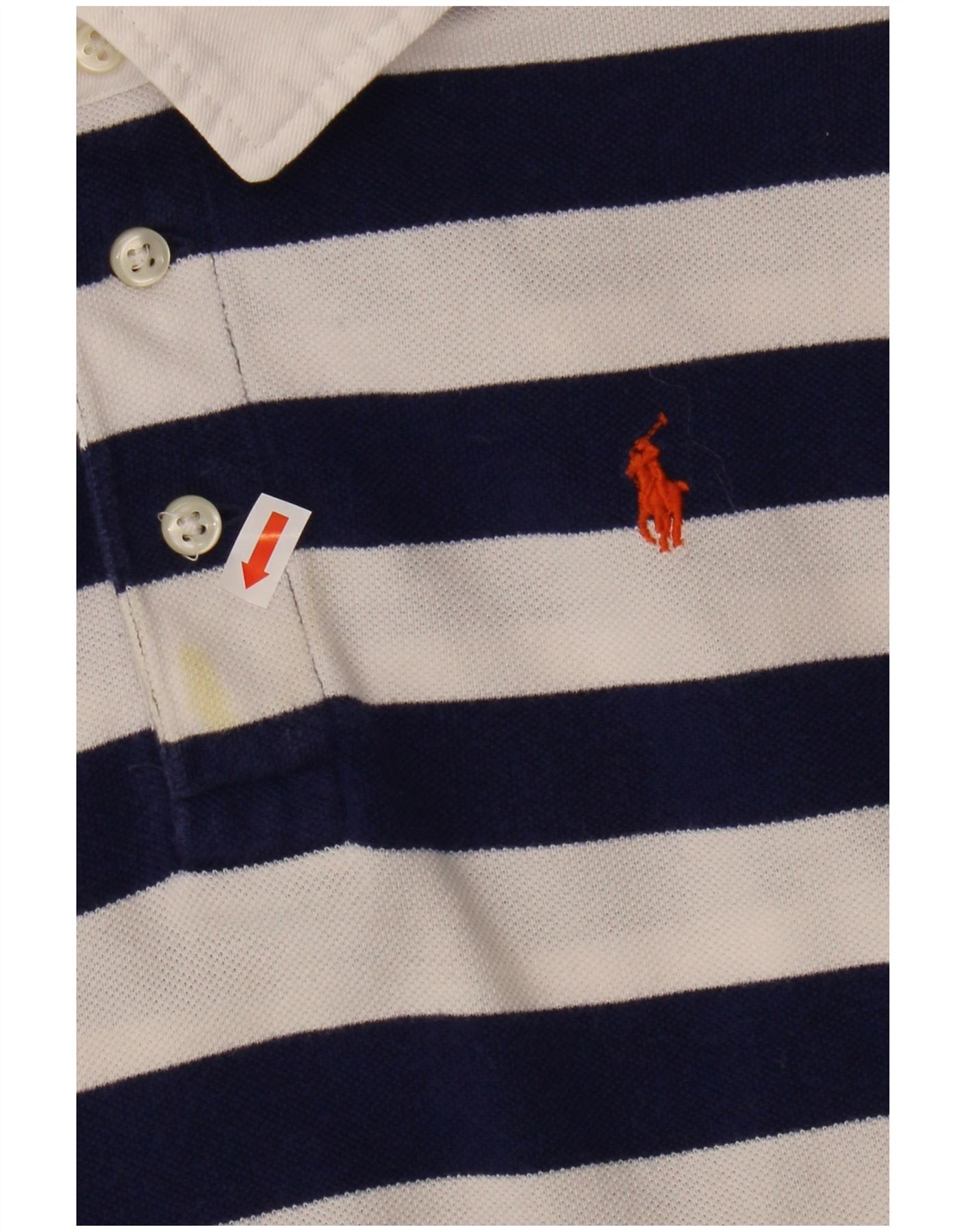 POLO RALPH LAUREN Boys Polo Shirt 7-8 Years Small Navy Blue Striped Cotton