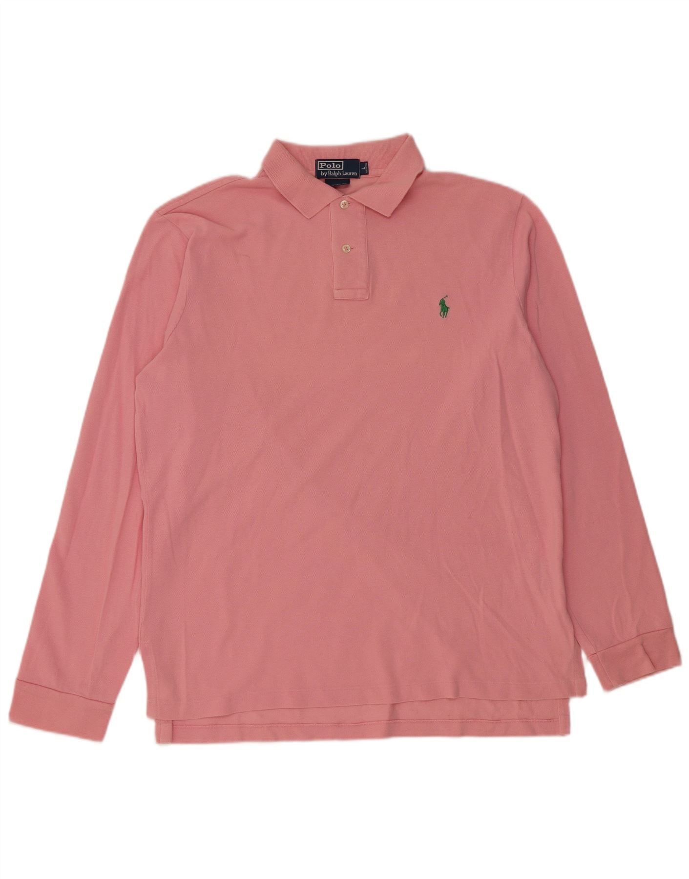 POLO RALPH LAUREN Polo de manga larga para hombre, ajuste personalizado, algodón rosa grande