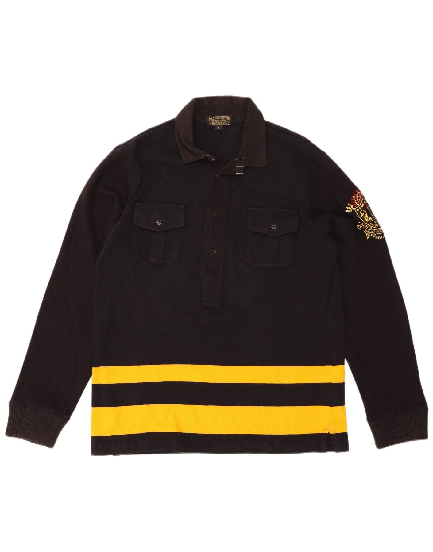 POLO RALPH LAUREN Polo de rugby de manga larga para hombre, grande, negro, a rayas