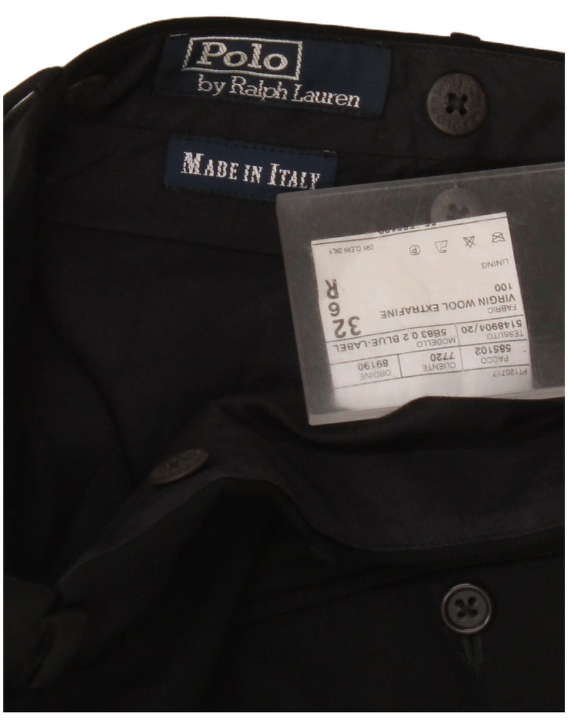 POLO RALPH LAUREN Pantalones informales con pinzas para hombre W32 L26 Lana virgen negra