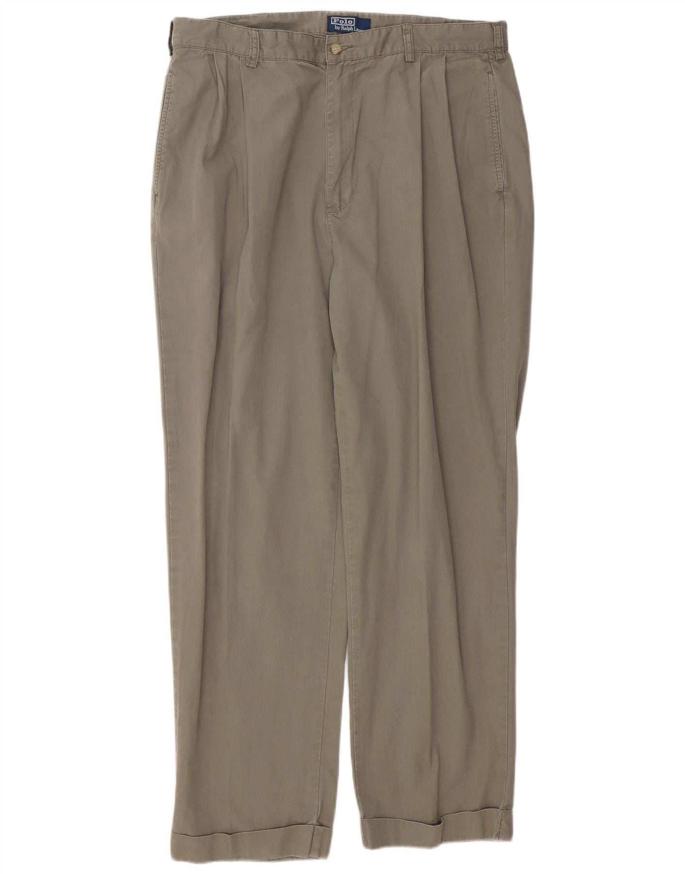 POLO RALPH LAUREN Pantalón chino con pinzas para hombre W38 L32 Algodón gris
