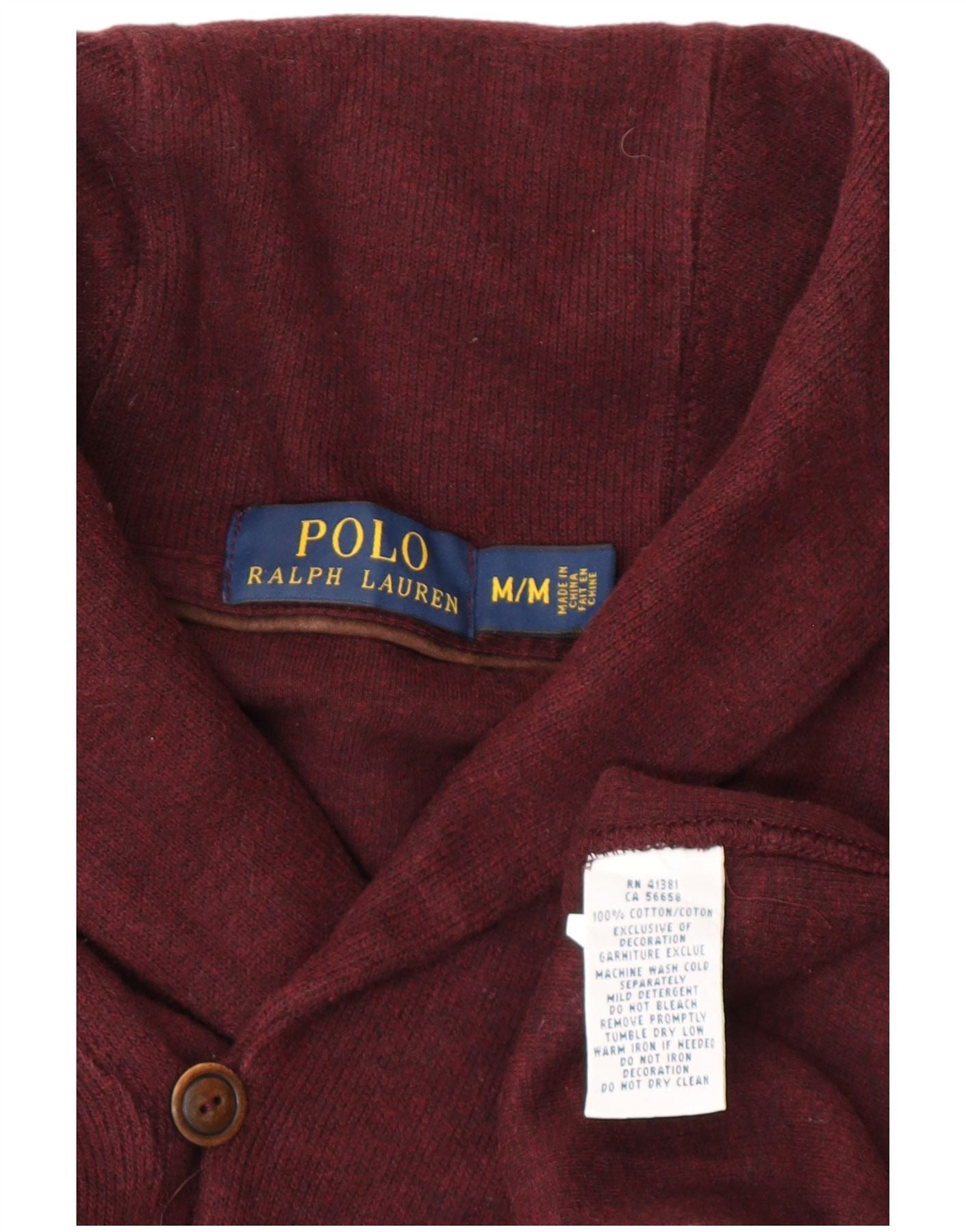 POLO RALPH LAUREN Suéter tipo jersey con cuello chal para hombre Algodón burdeos medio