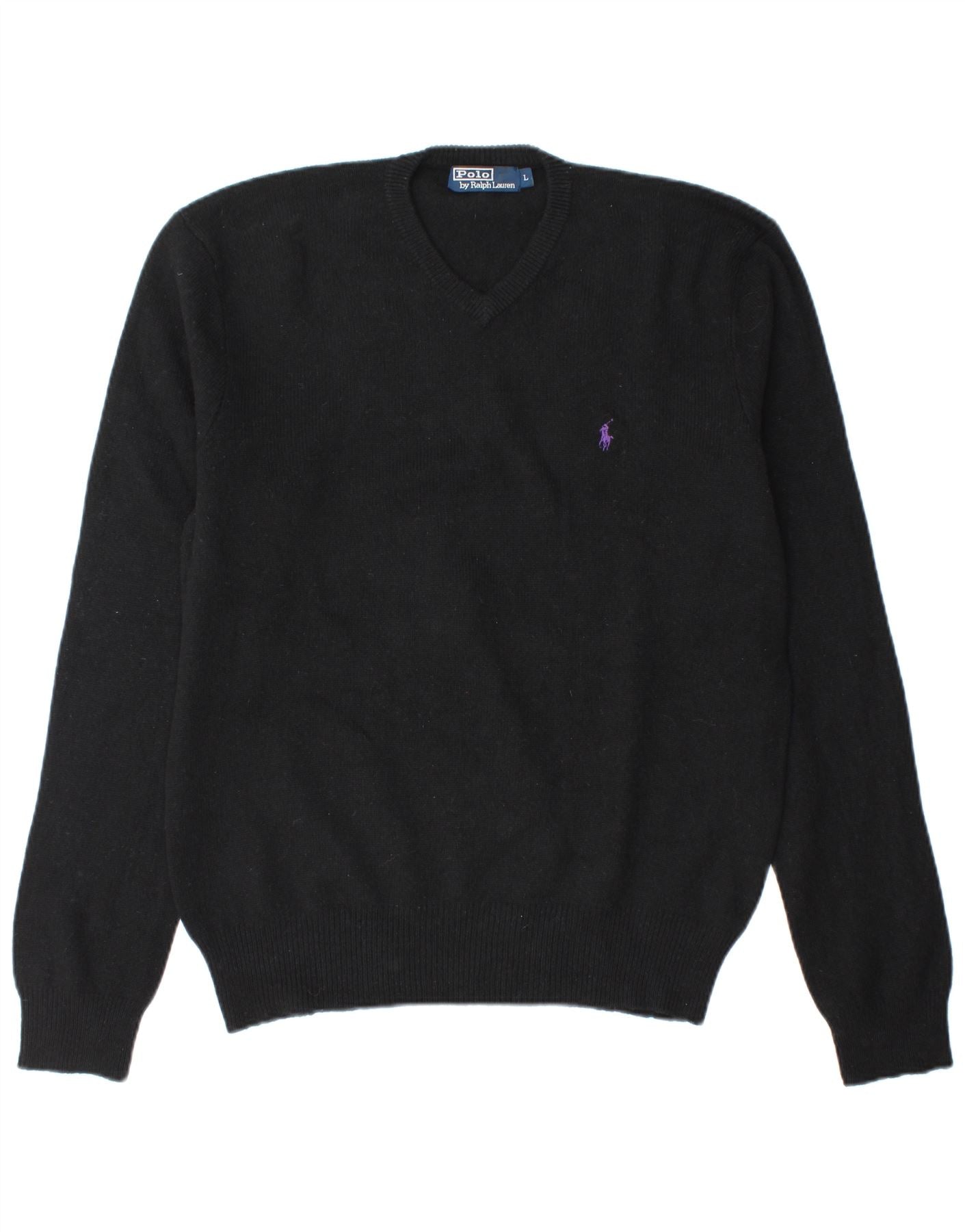 Polo Ralph Lauren - Jersey con cuello en V para hombre, talla grande, lana de cordero negra