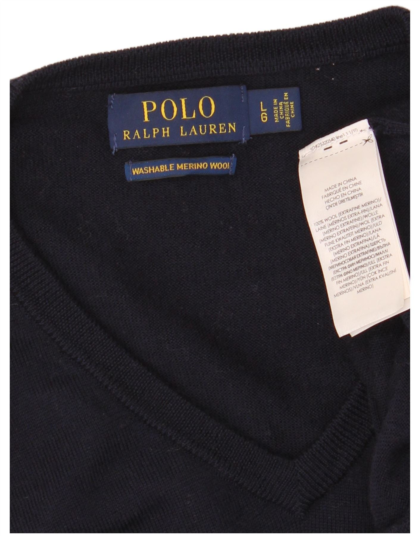 Polo Ralph Lauren - Jersey con cuello en V para hombre, talla grande, lana merino, color azul marino