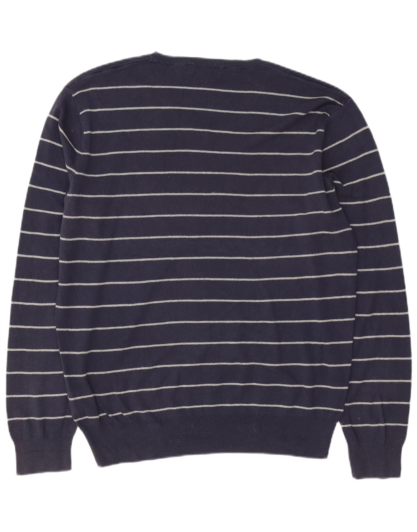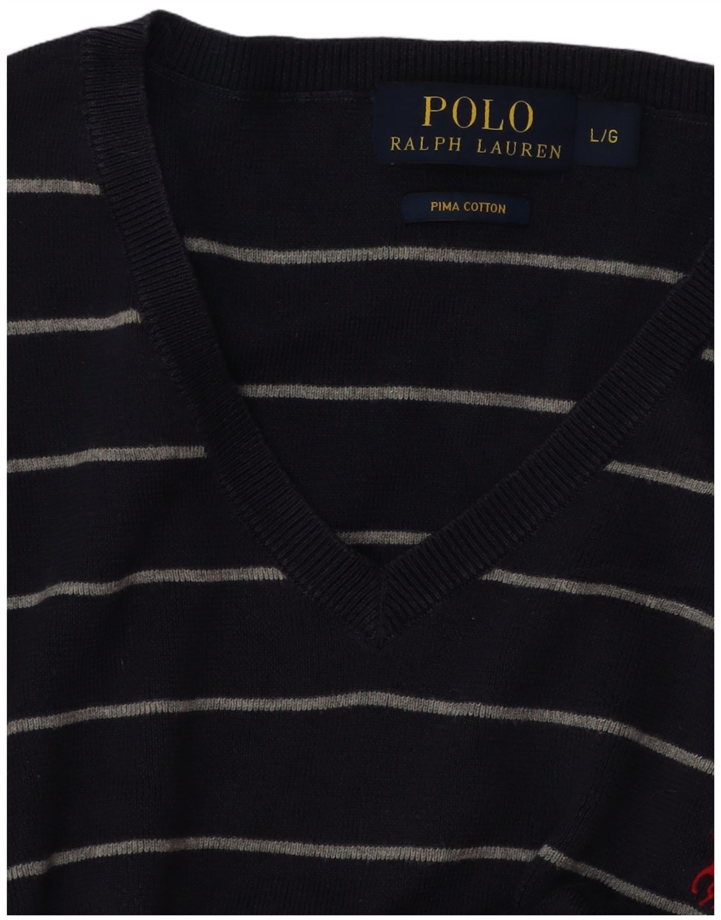 POLO RALPH LAUREN Jersey con cuello en V para hombre Suéter grande azul marino a rayas