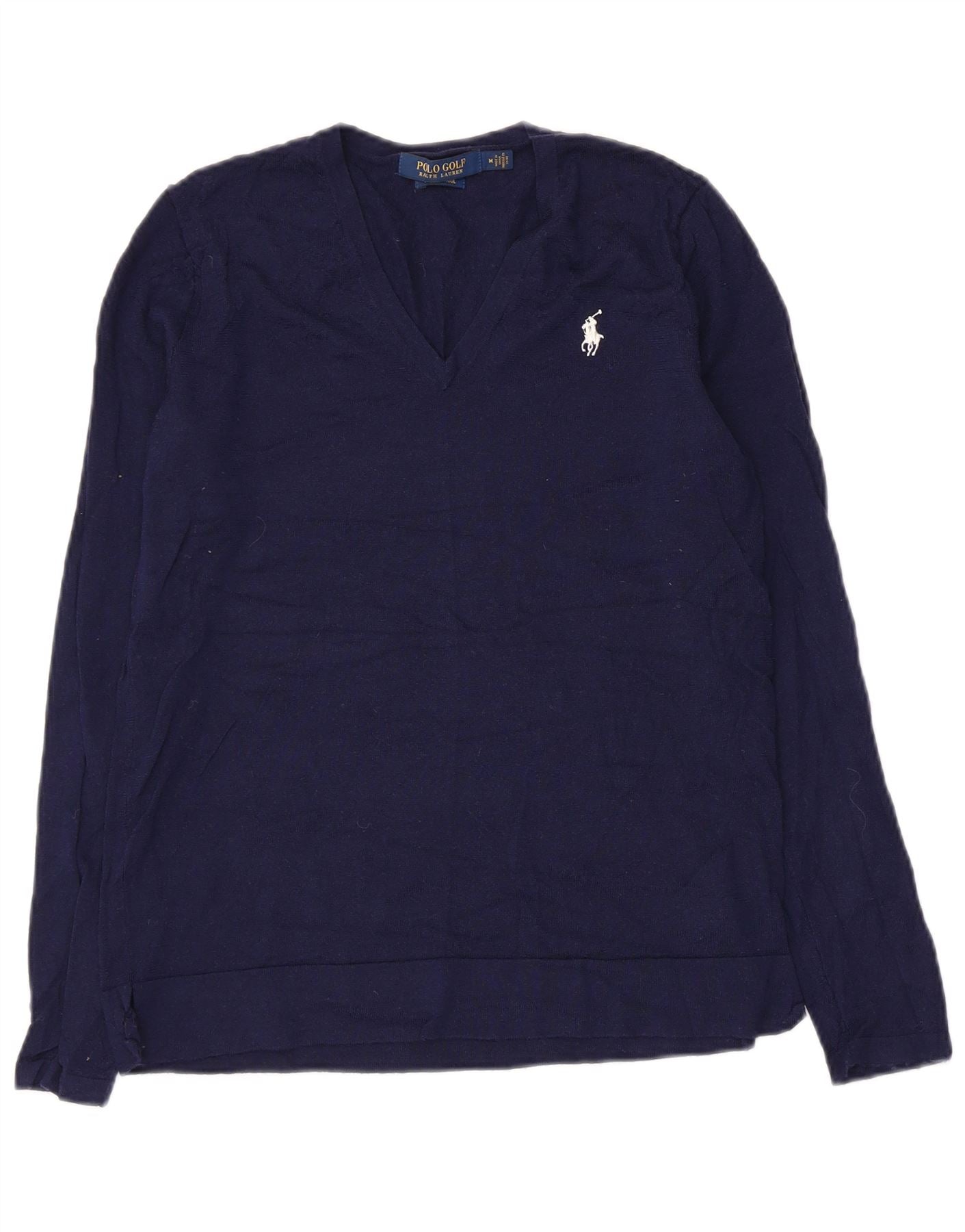 Polo Ralph Lauren - Jersey con cuello en V para mujer, talla 12, lana azul marino mediana