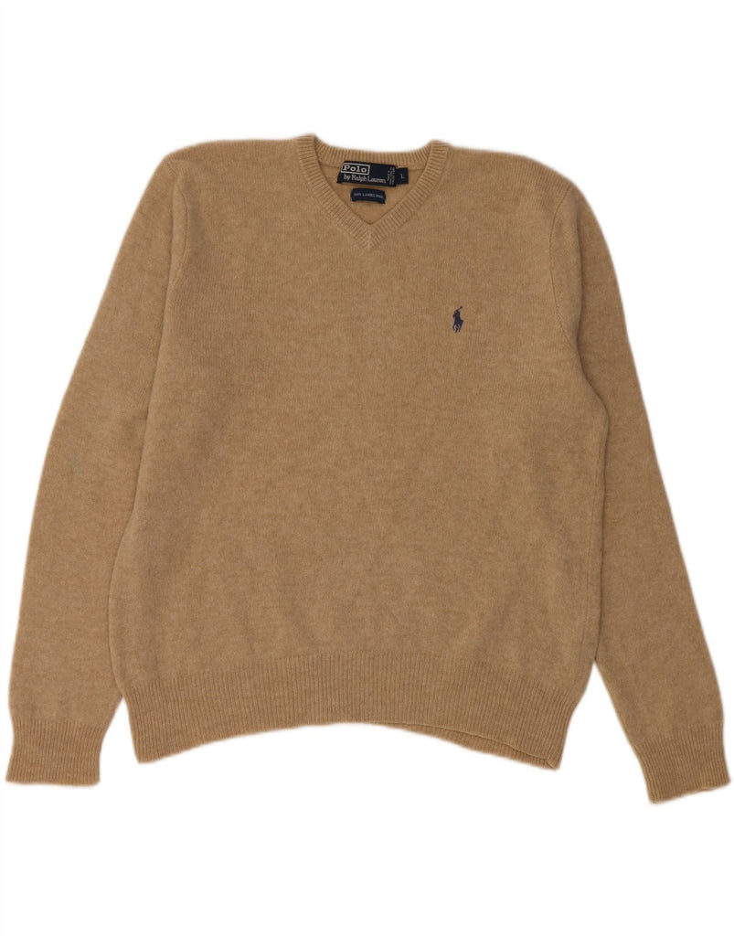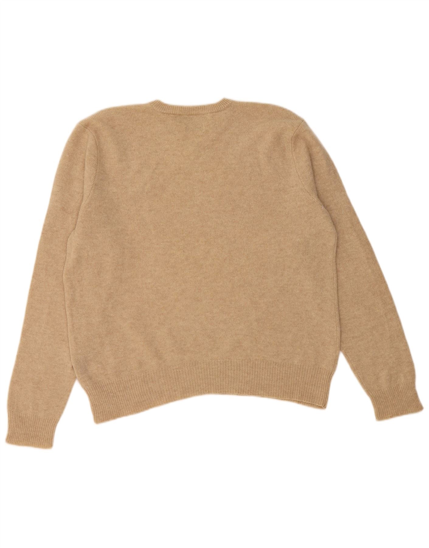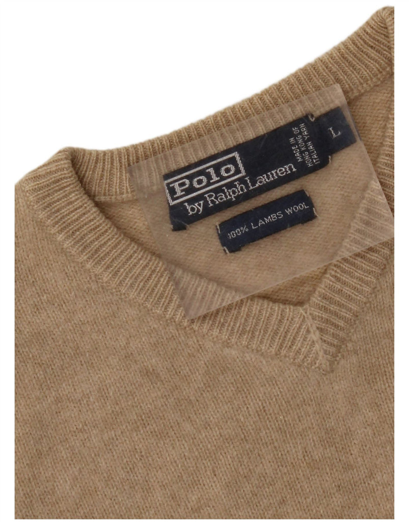 POLO RALPH LAUREN Suéter con cuello en V para mujer UK 46 Large Beige Lambswool