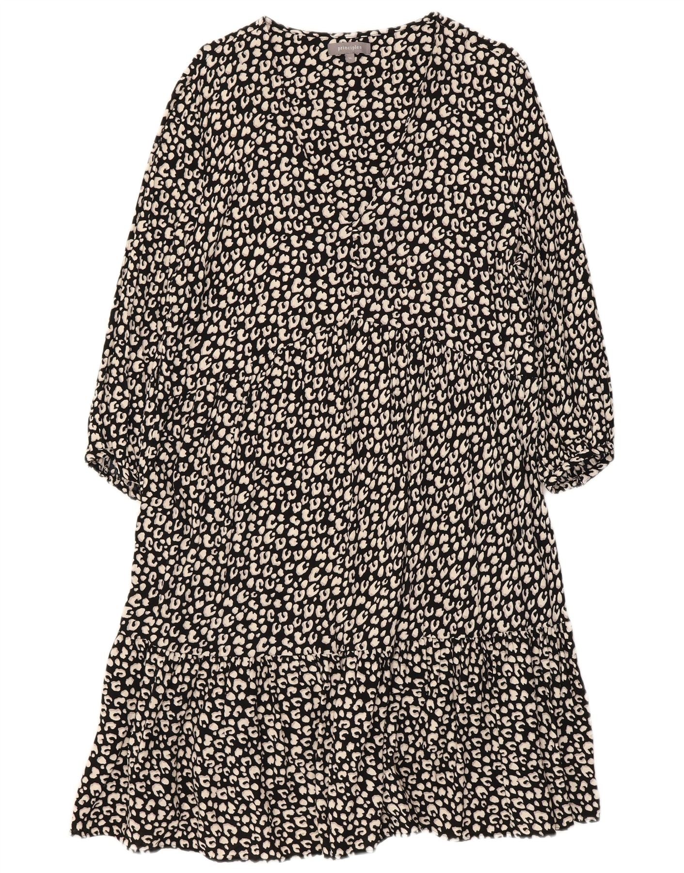 PRINCIPLES Vestido escalonado de manga 3/4 para mujer UK 46 Grande Estampado animal negro
