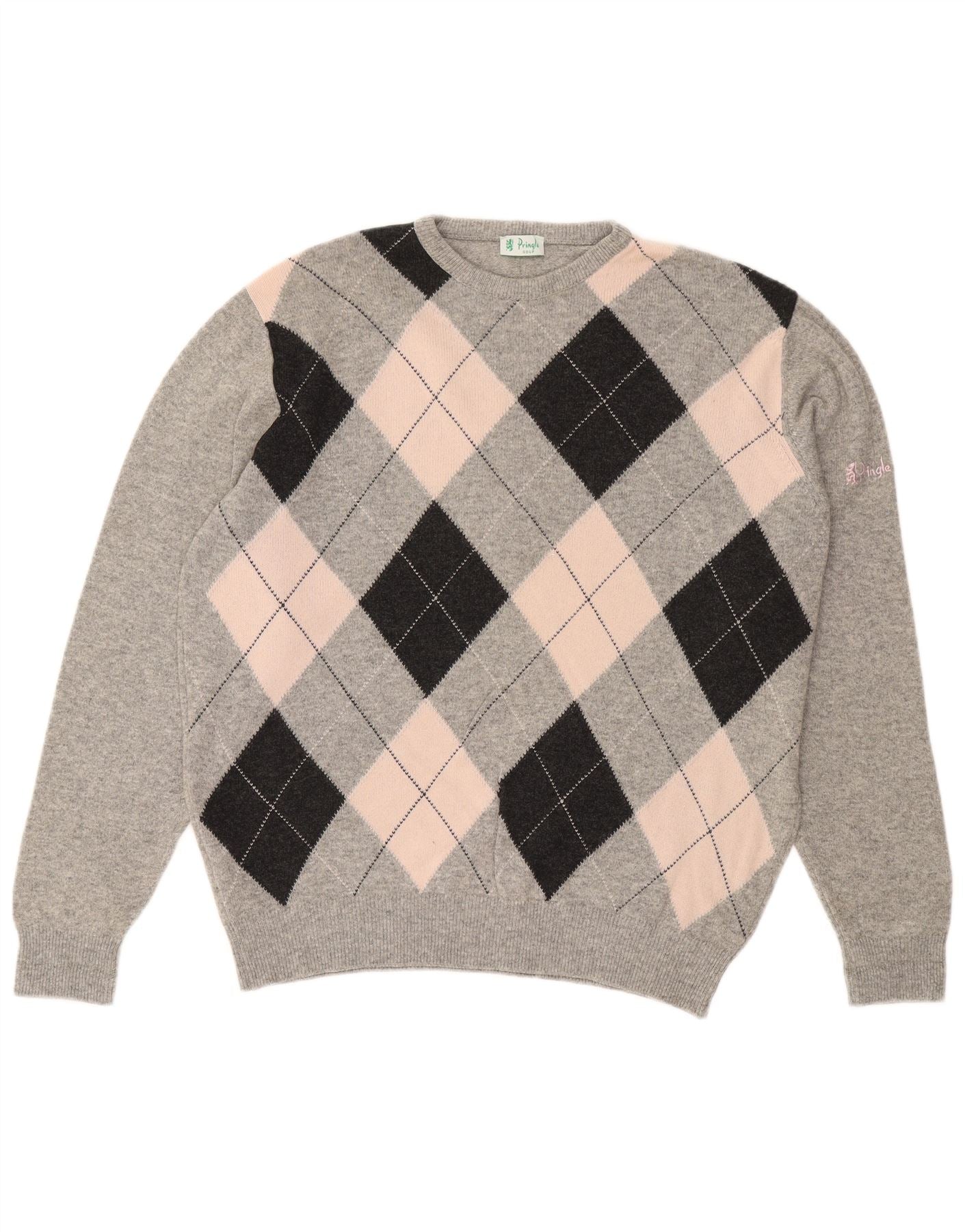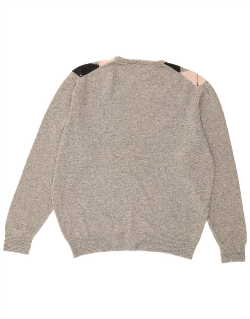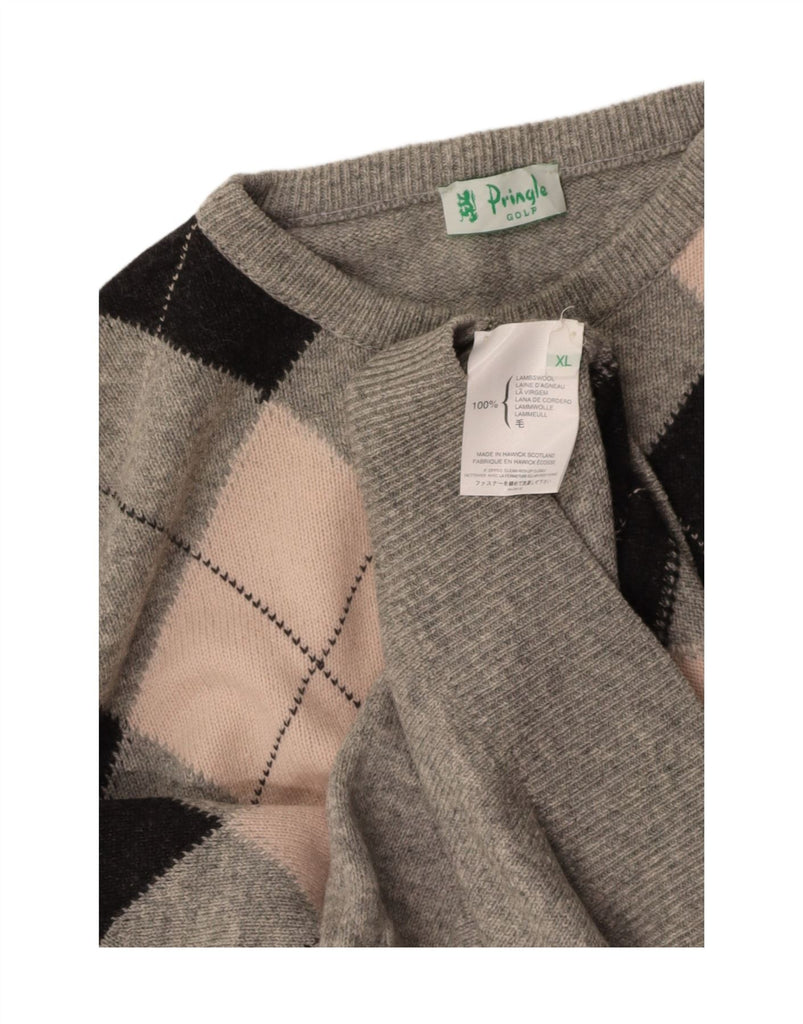 PRINGLE Mens Crew Neck Jumper Sweater XL Grey Argyle/Diamond Lambswool