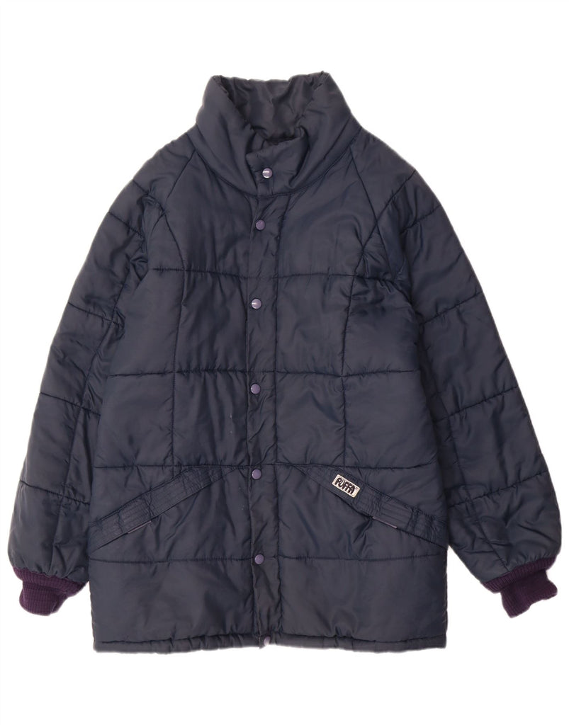 - AI Description: This Puffa mens padded jacket comes in a rich navy blue woven fabric. Its padded construction offers warmth and comfort. It features a classic collared neckline and long sleeves. The regular fit ensures comfortable wear. A five button front closure provides a neat finish. Practical pockets are included for convenience. The jacket is fully lined and offers thermal properties.