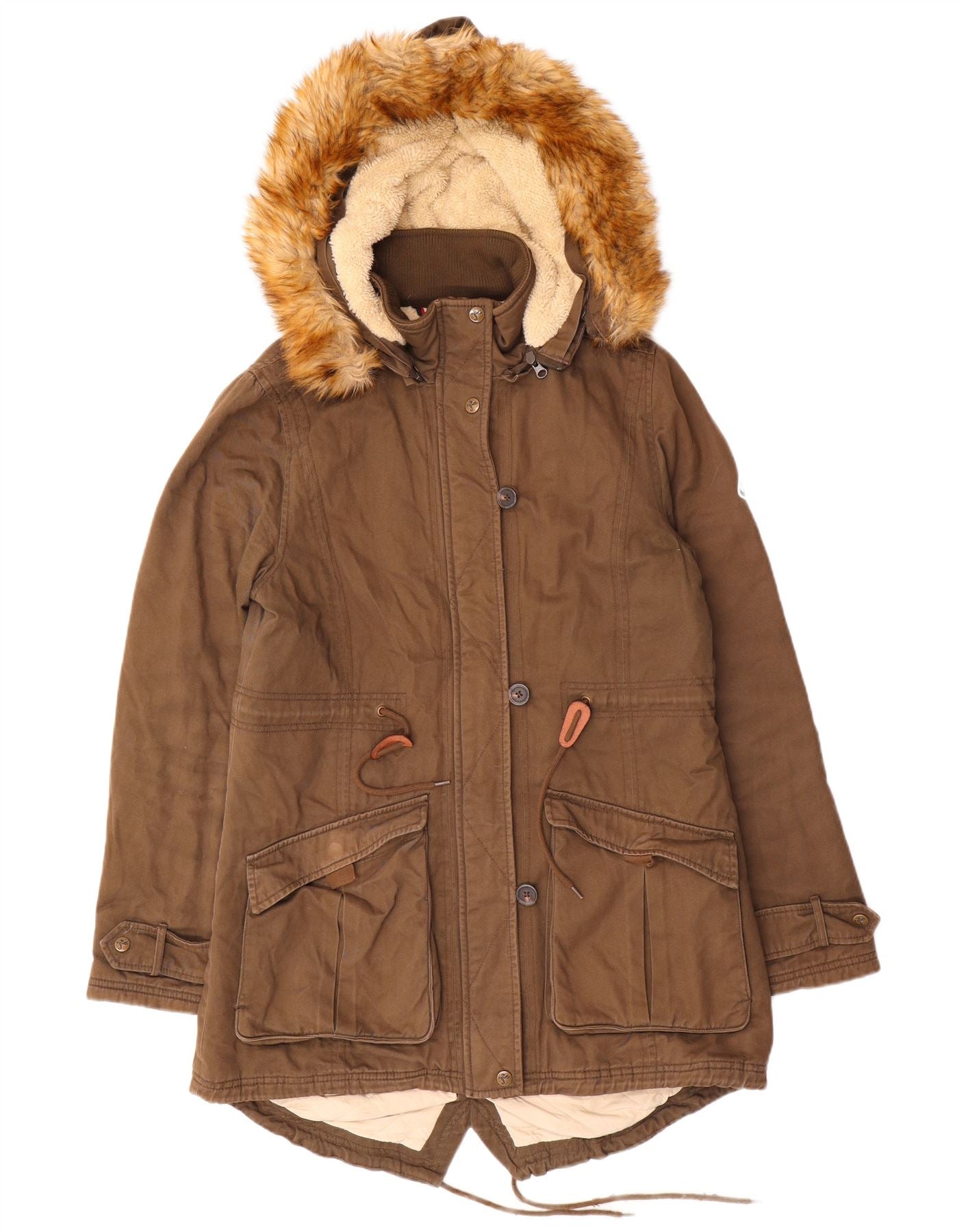 Puffa Chaqueta Parka con Capucha para Mujer Reino Unido 44 Grande Algodón Marrón