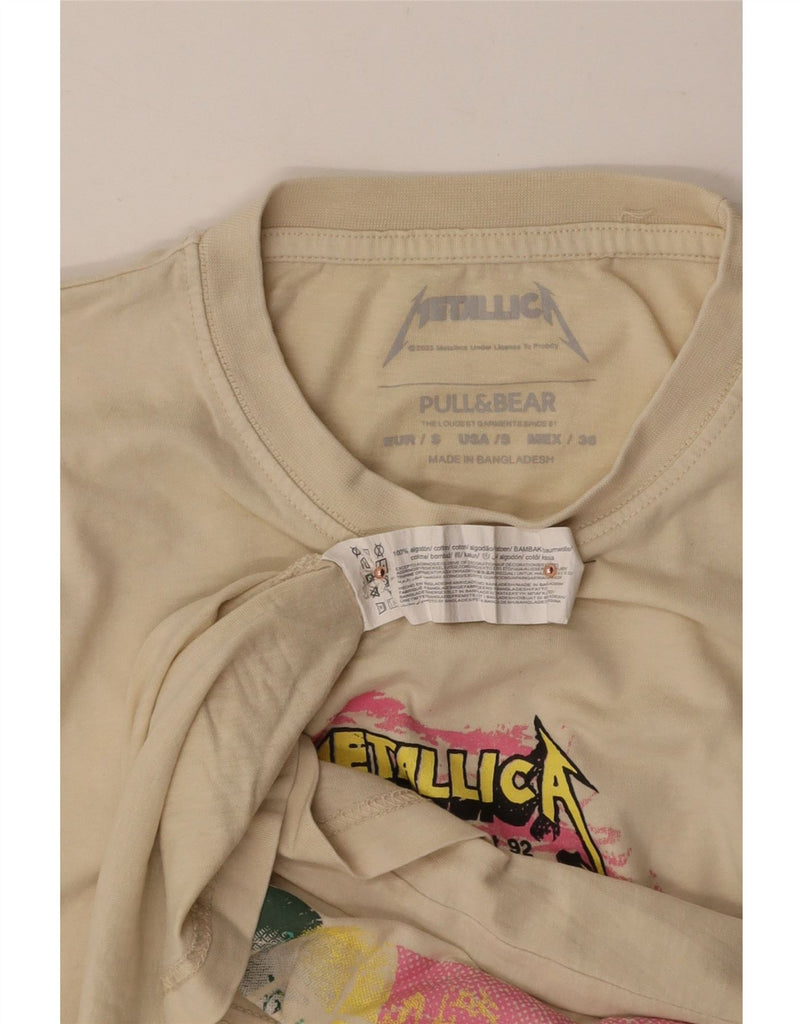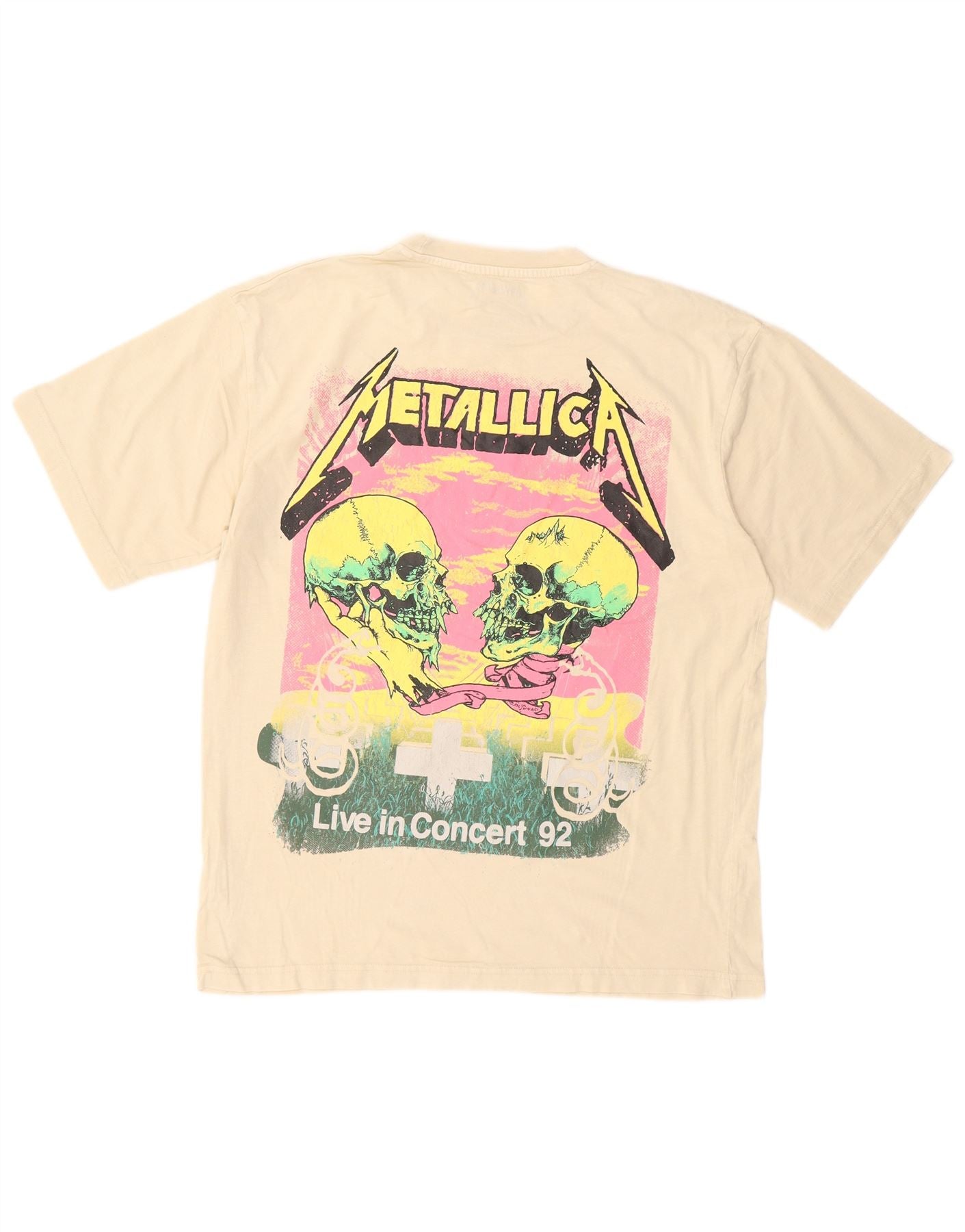 PULL & BEAR Mens Metallica Graphic T-Shirt Top Small Beige Cotton