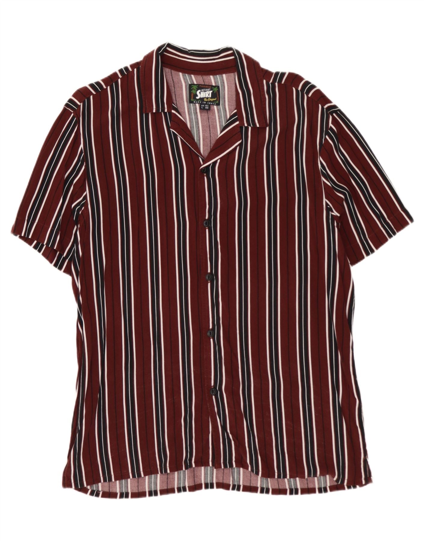 PULL & BEAR Camisa Hombre Manga Corta Large Viscosa Rayas Burdeos