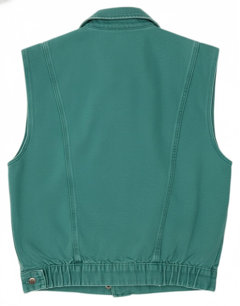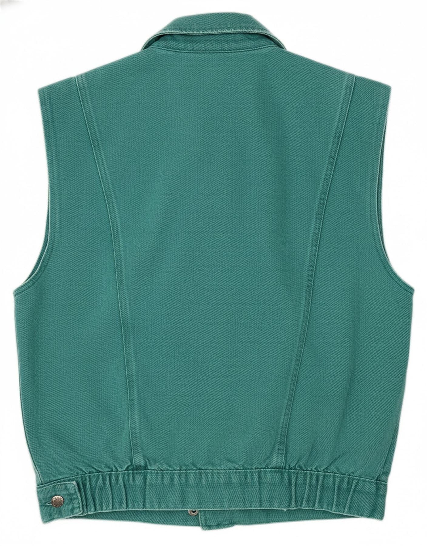 PULL & BEAR Womens Oversized Denim Gilet UK 10 Small Green Cotton