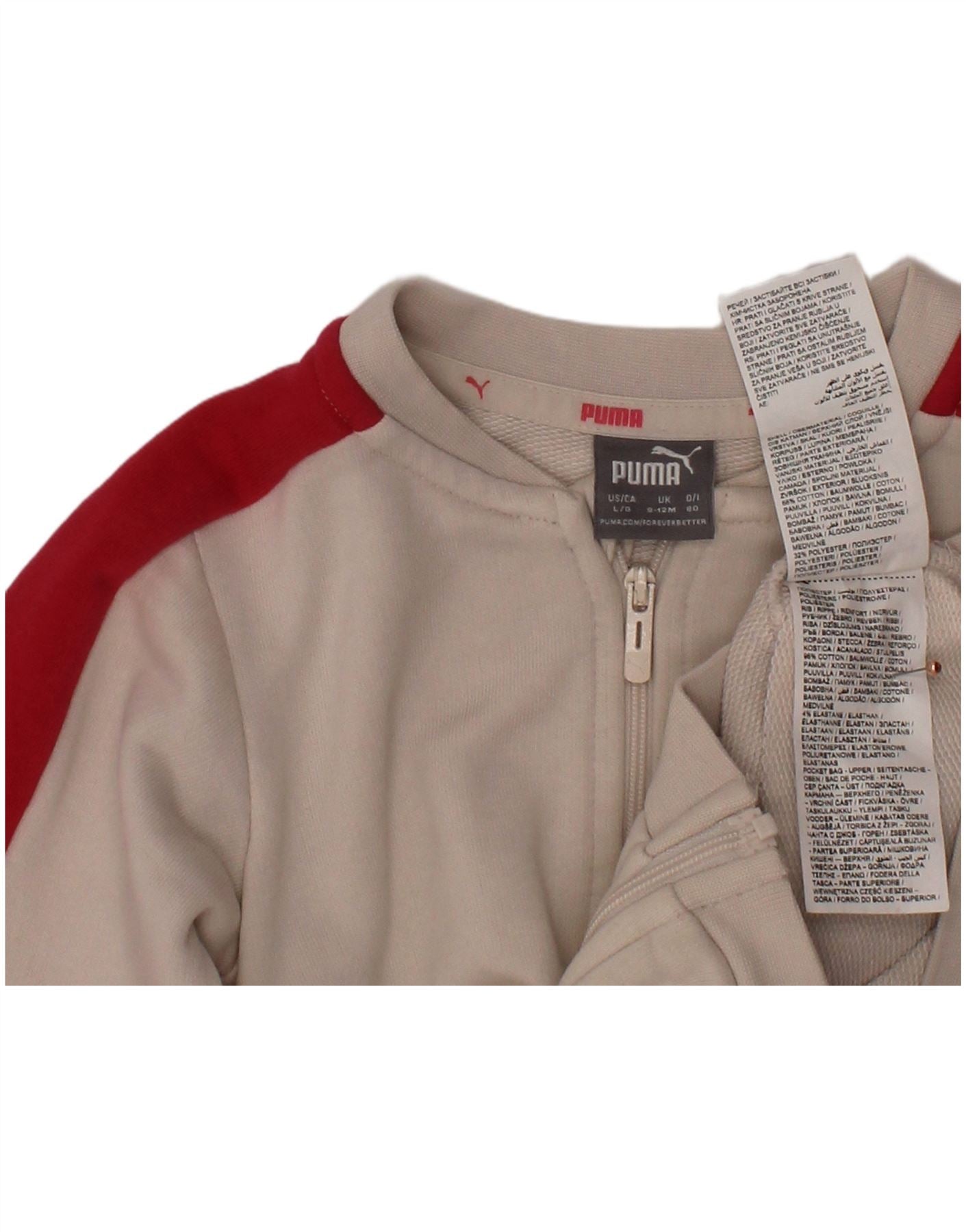 PUMA Chaqueta de chándal con estampado gráfico para niñas de 9 a 12 meses, color blanco