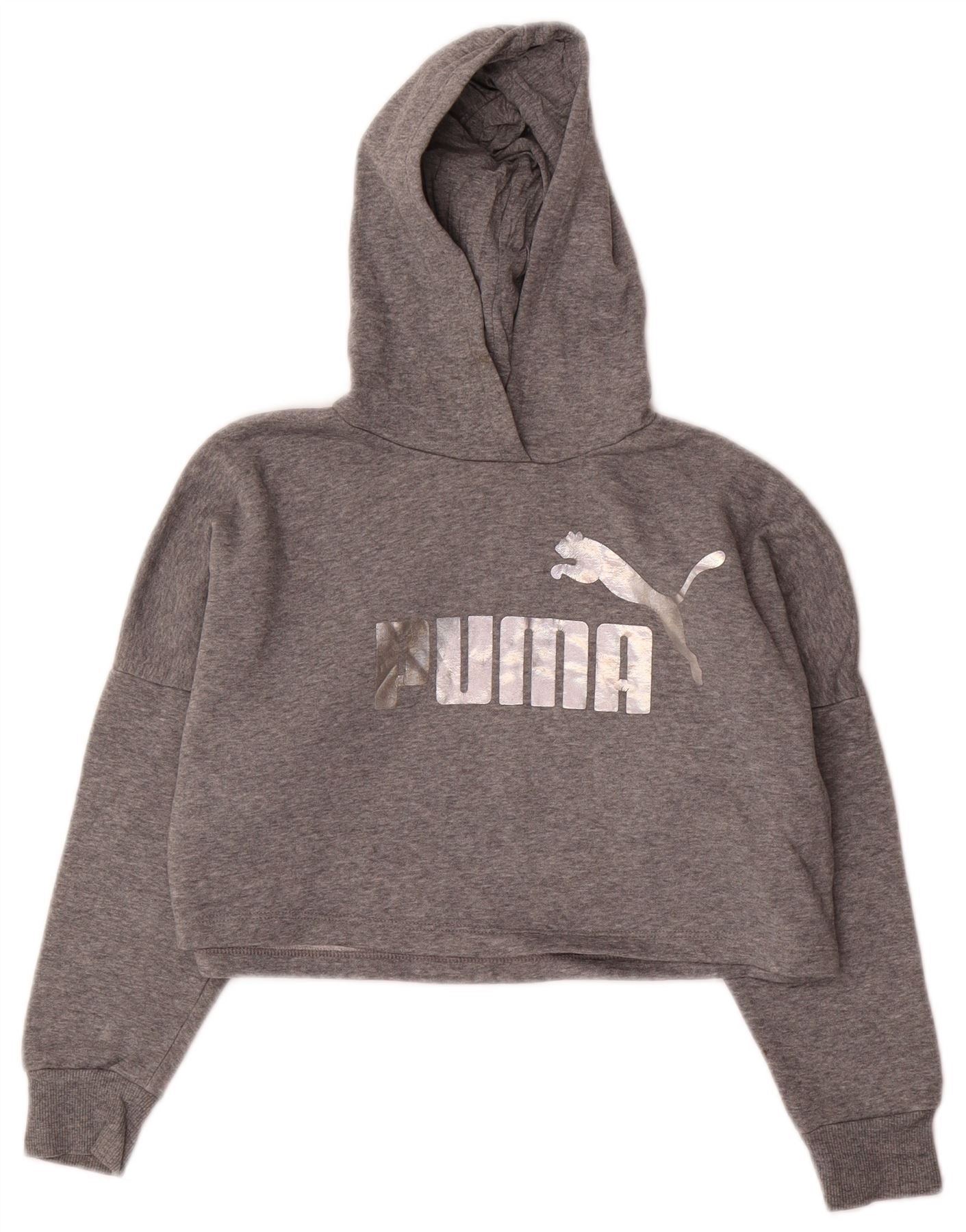 PUMA Jersey con capucha y gráfico corto para niñas 9-10 años Algodón gris