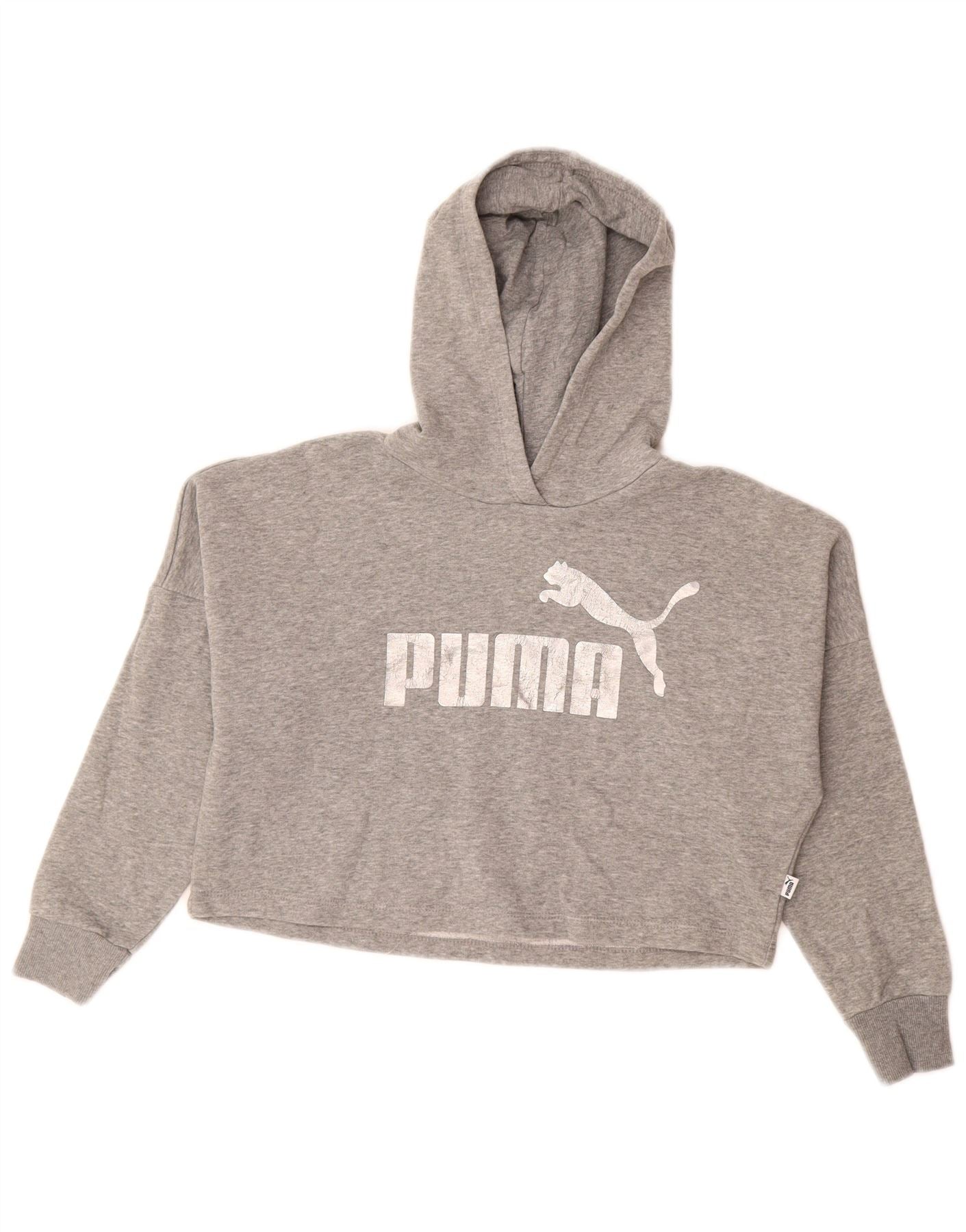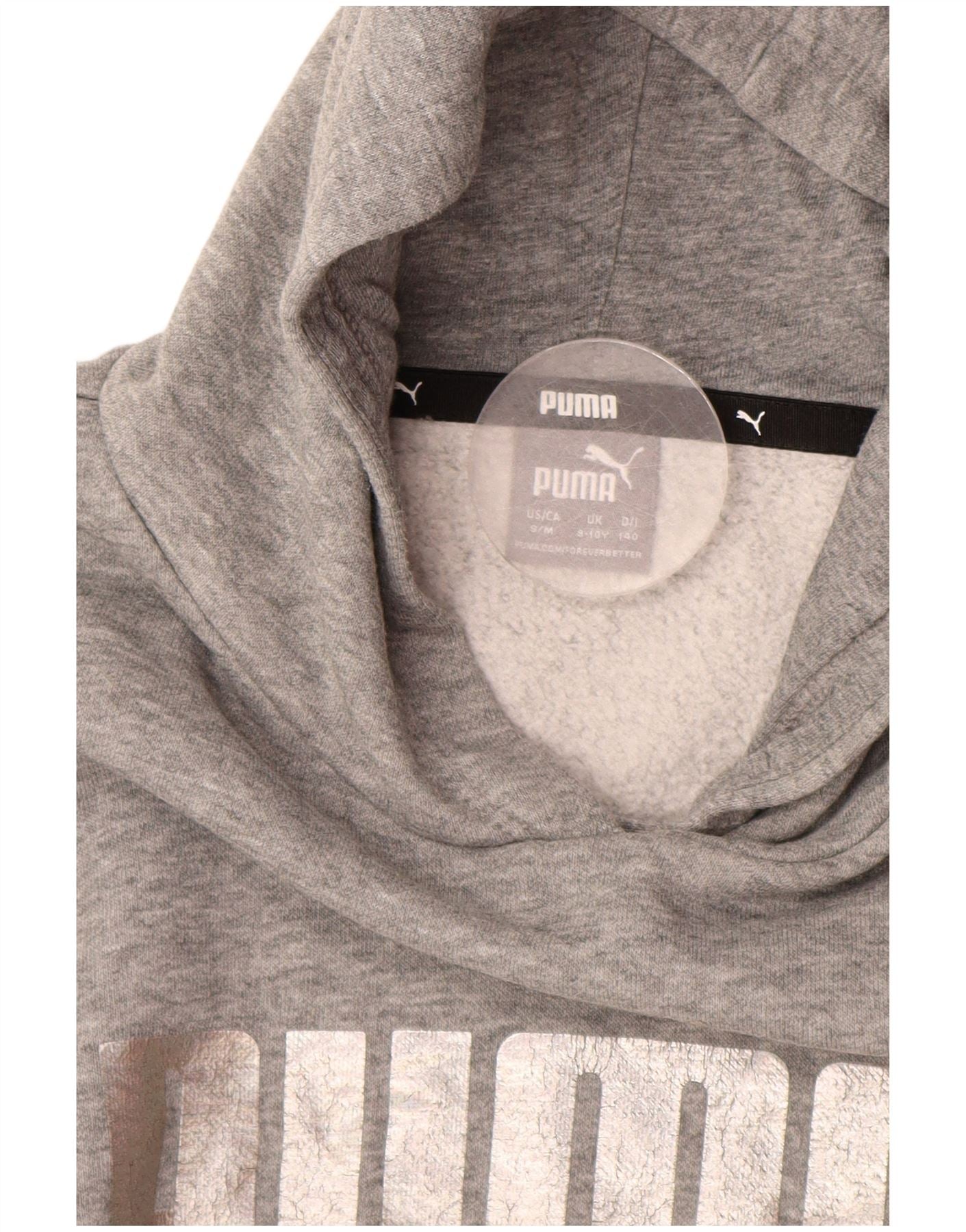 PUMA Jersey con capucha y gráfico corto para niñas 9-10 años Algodón gris