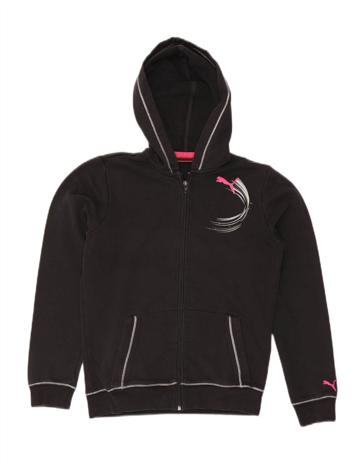 PUMA Sudadera con capucha y cremallera gráfica para niñas 13-14 años Algodón negro