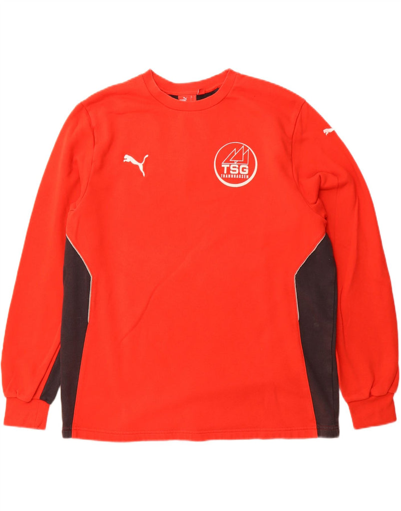 PUMA Sudadera con estampado gráfico para hombre, jersey grande de algodón con bloques de color rojo