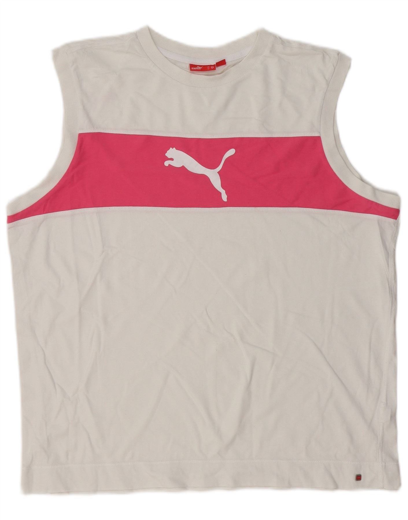 PUMA Camiseta sin mangas gráfica para hombre XL Algodón blanco con bloques de color