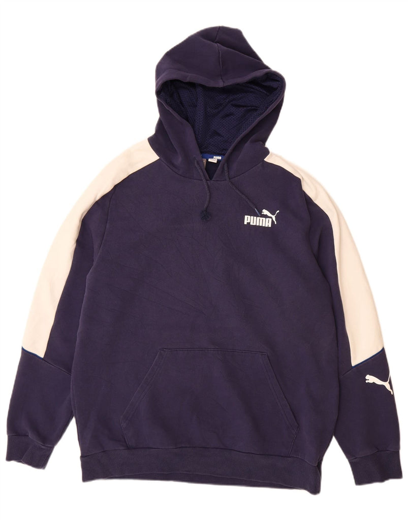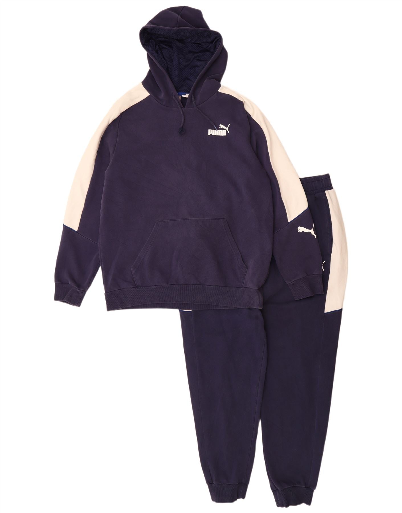 PUMA Chándal completo con capucha para hombre, tamaño grande, algodón azul marino con bloques de color