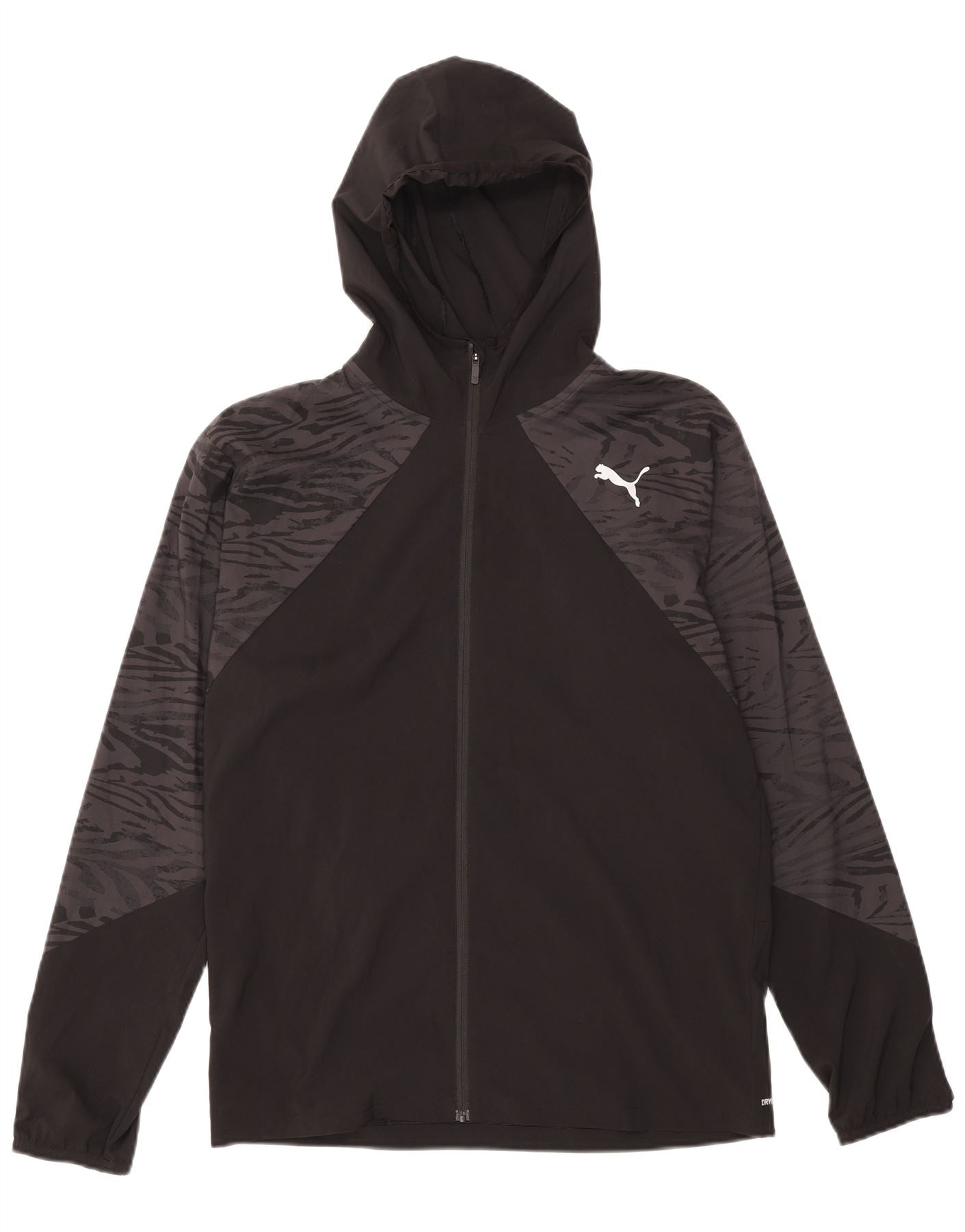 PUMA Mens Hooded Tracksuit Top Jacket Medium Black Animal Print Polyester