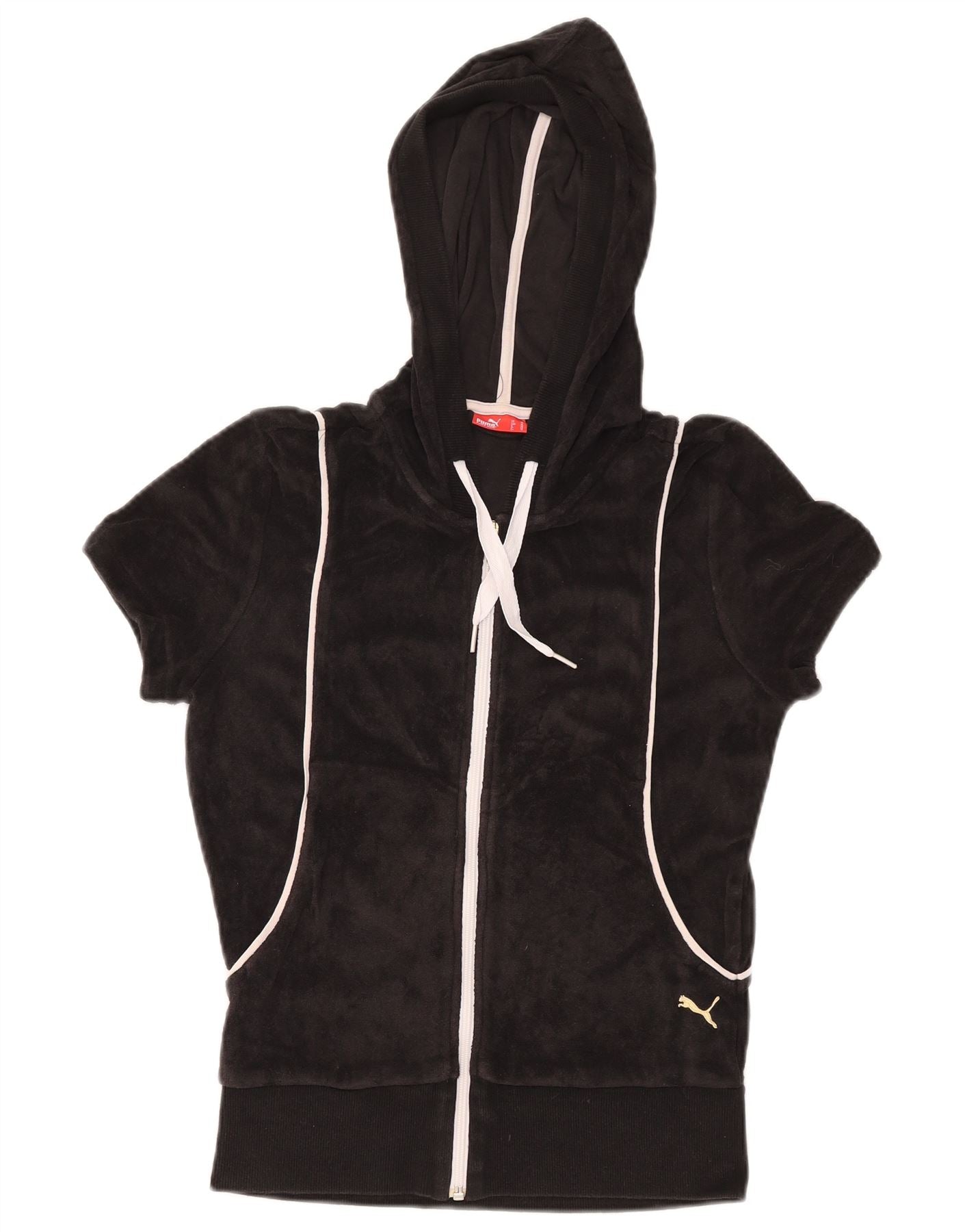 PUMA Suéter con capucha de terciopelo con cremallera de manga corta para mujer UK 40 Medium Black