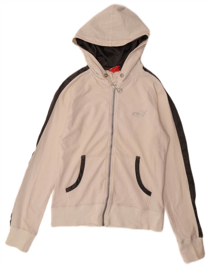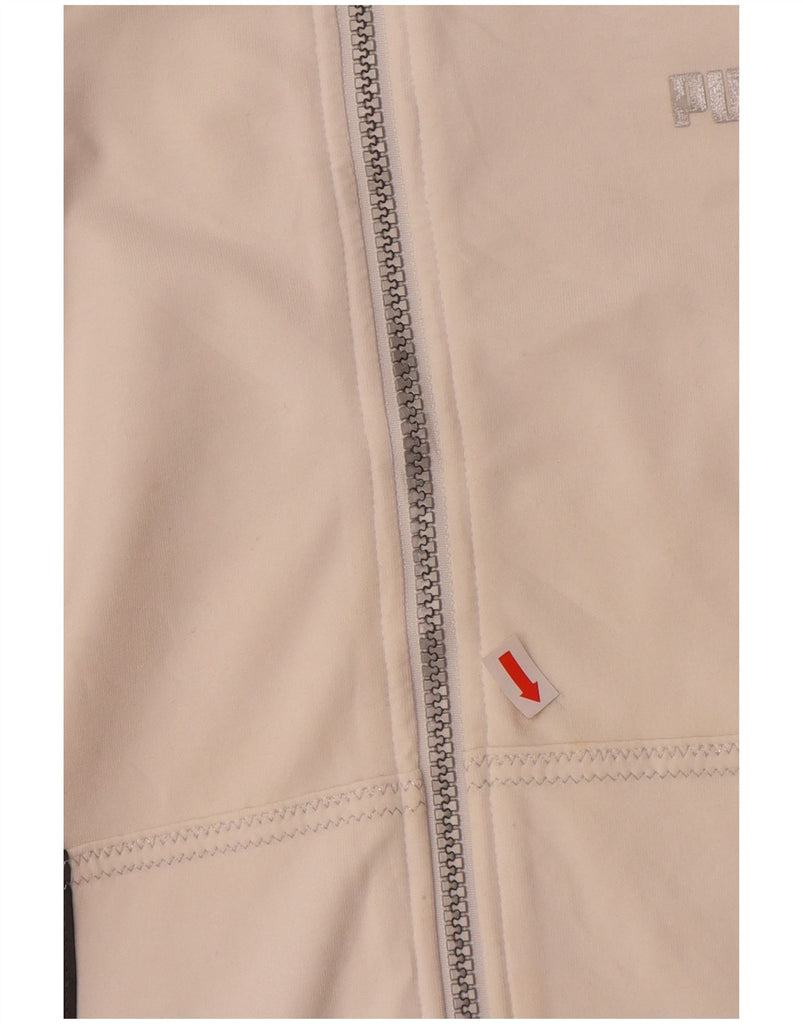 PUMA Suéter con capucha y cremallera para mujer UK 12 Medium White Colourblock Cotton