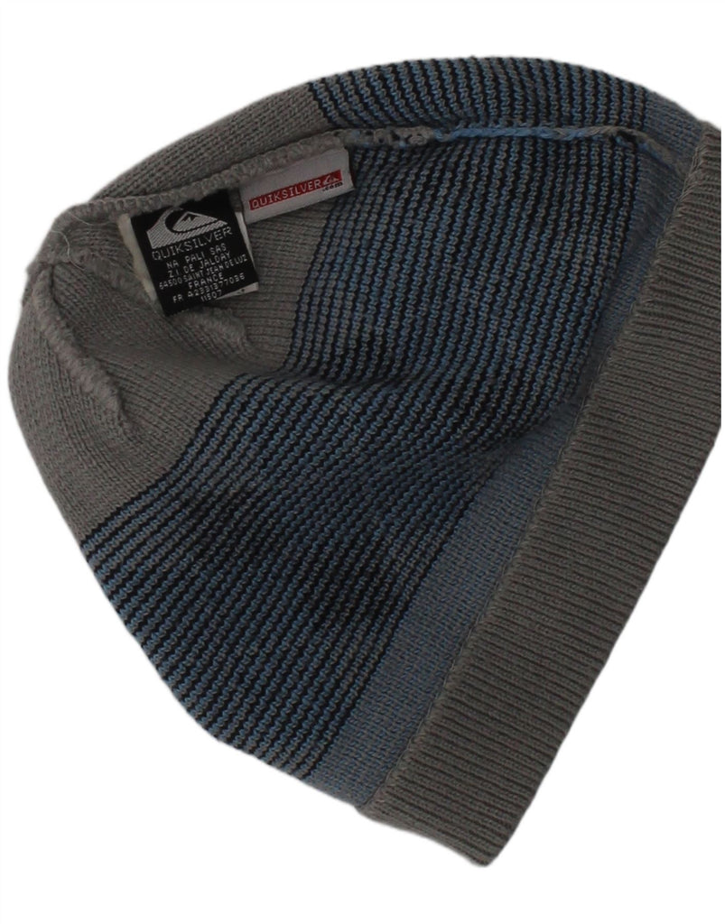 QUIKSILVER Mens Knit Beanie Hat One Size Grey Geometric Acrylic Classic