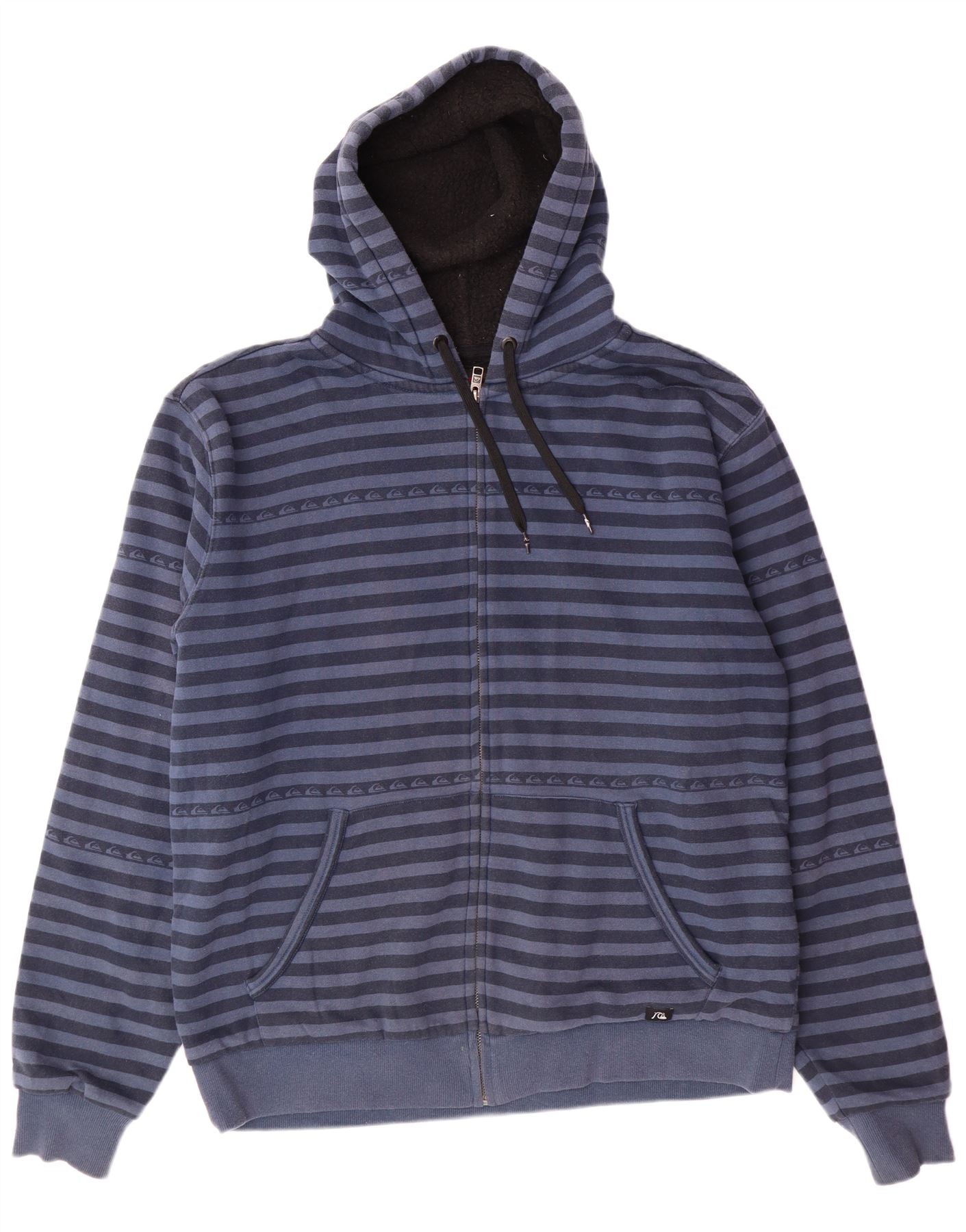 QUIKSILVER Suéter con capucha Sherpa Zip para hombre XL Algodón a rayas azules