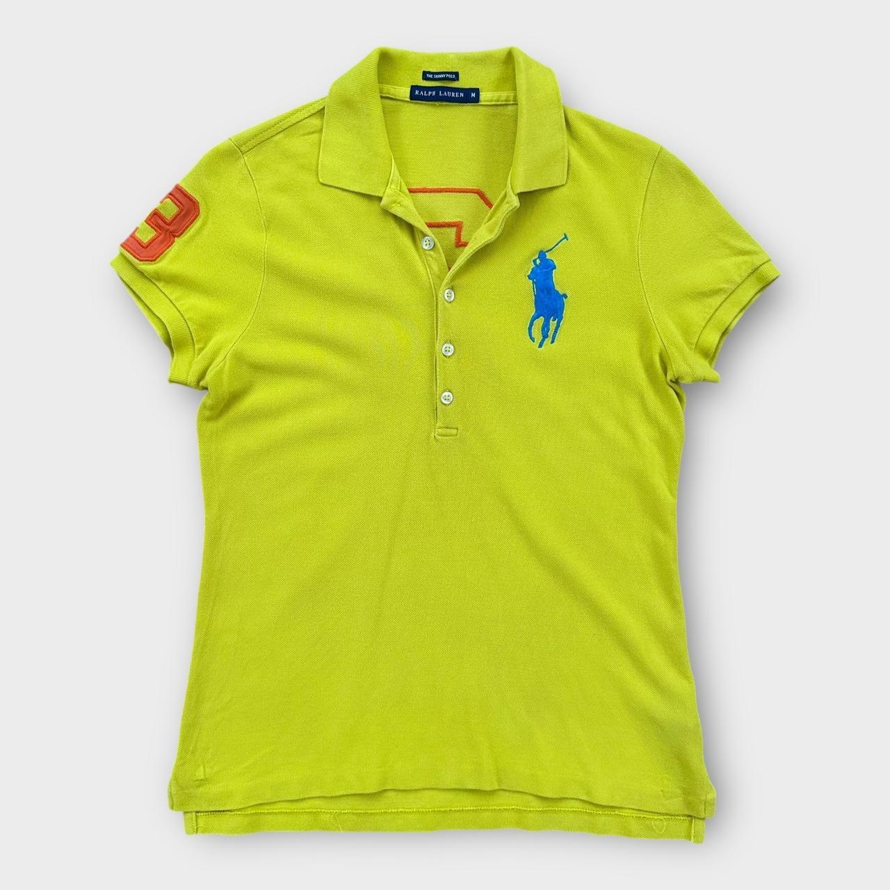 Polo de mujer Polo Ralph Lauren de principios de 2000 con botones y pony grande en amarillo y logo bordado en el pecho