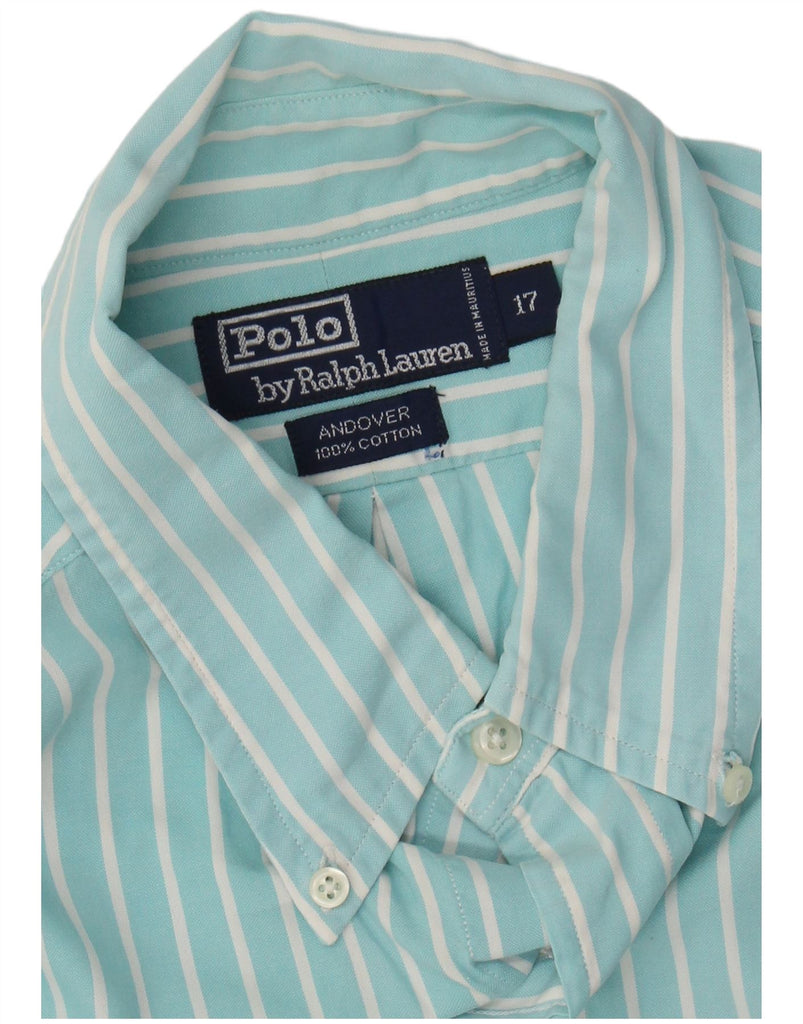 RALPH LAUREN Camisa Andover para hombre Talla 17 XL Algodón a rayas turquesa