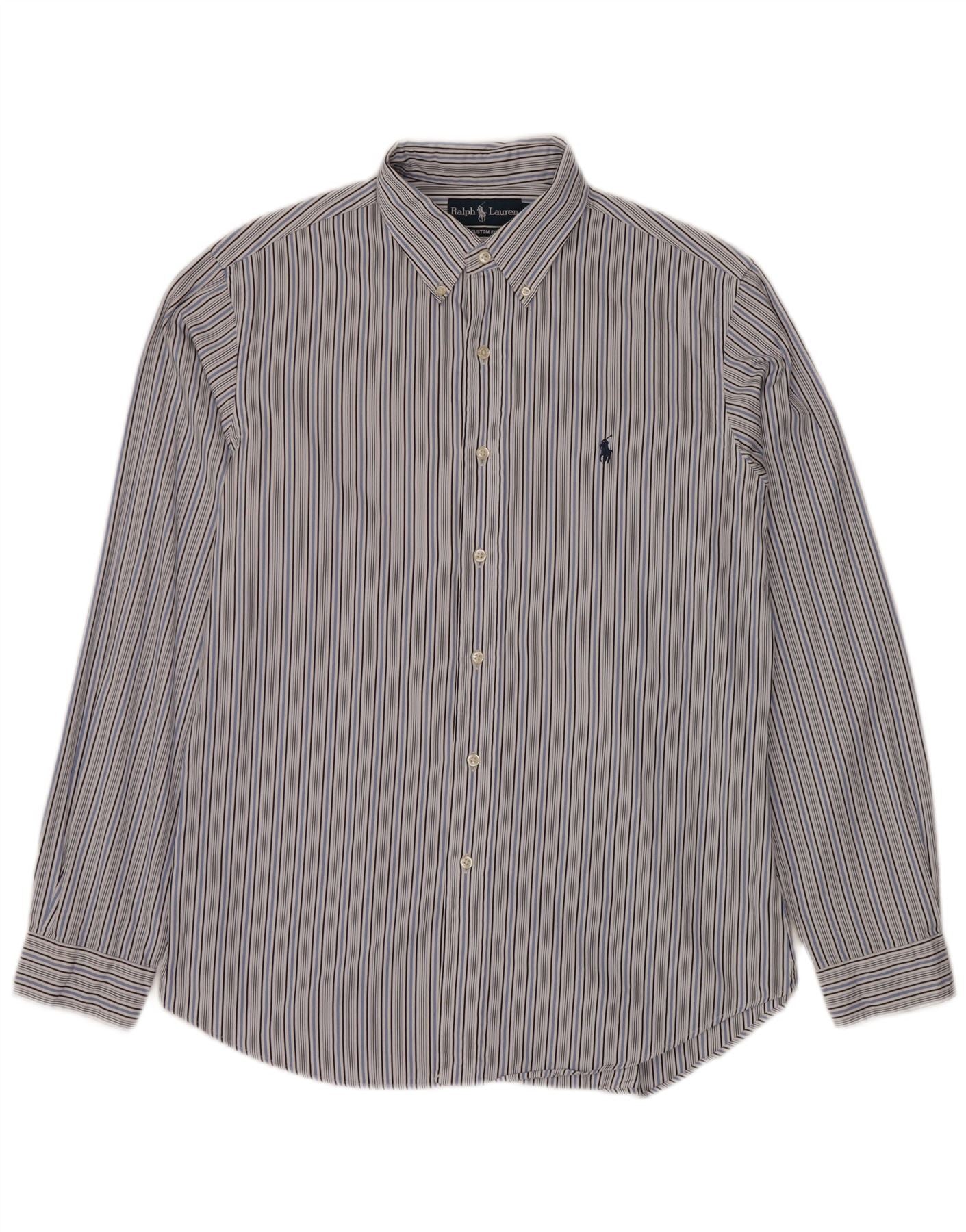 RALPH LAUREN Camisa de ajuste personalizado para hombre Talla 16 Algodón a rayas azules grandes
