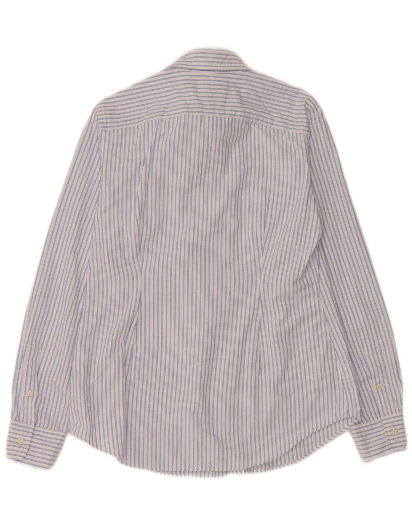 - Descripción de IA: Esta camisa para mujer de Ralph Lauren está confeccionada con tejido 100 % algodón. Presenta un patrón de rayas blancas y azules nítidas. El escote con cuello y la parte delantera completa con botones ofrecen un estilo clásico. Mangas largas rematadas con elegantes puños abotonados. Diseñado con un corte entallado, proporciona una silueta entallada. Un logotipo bordado acentúa sutilmente el pecho. Esta camisa combina un estilo atemporal con detalles refinados.