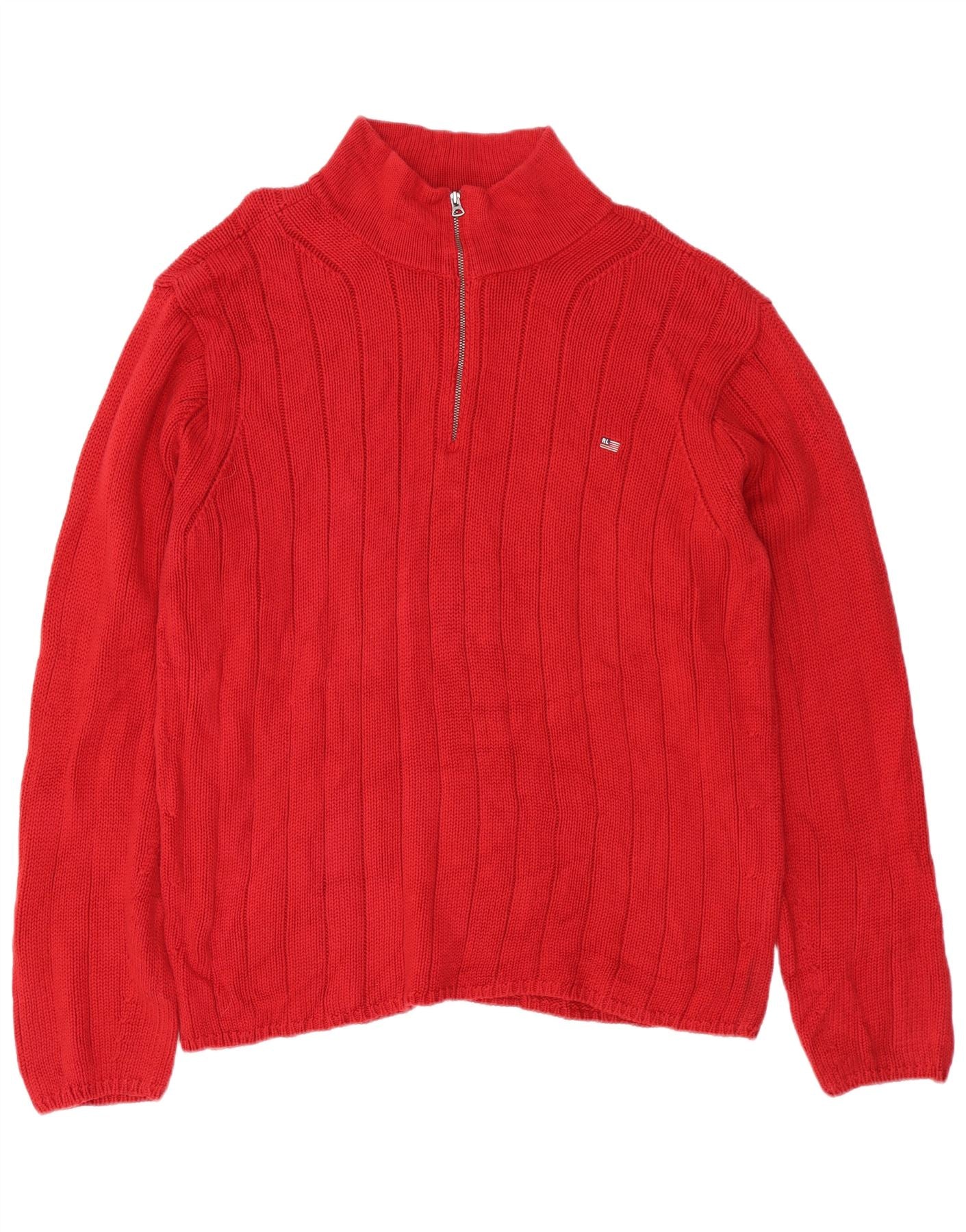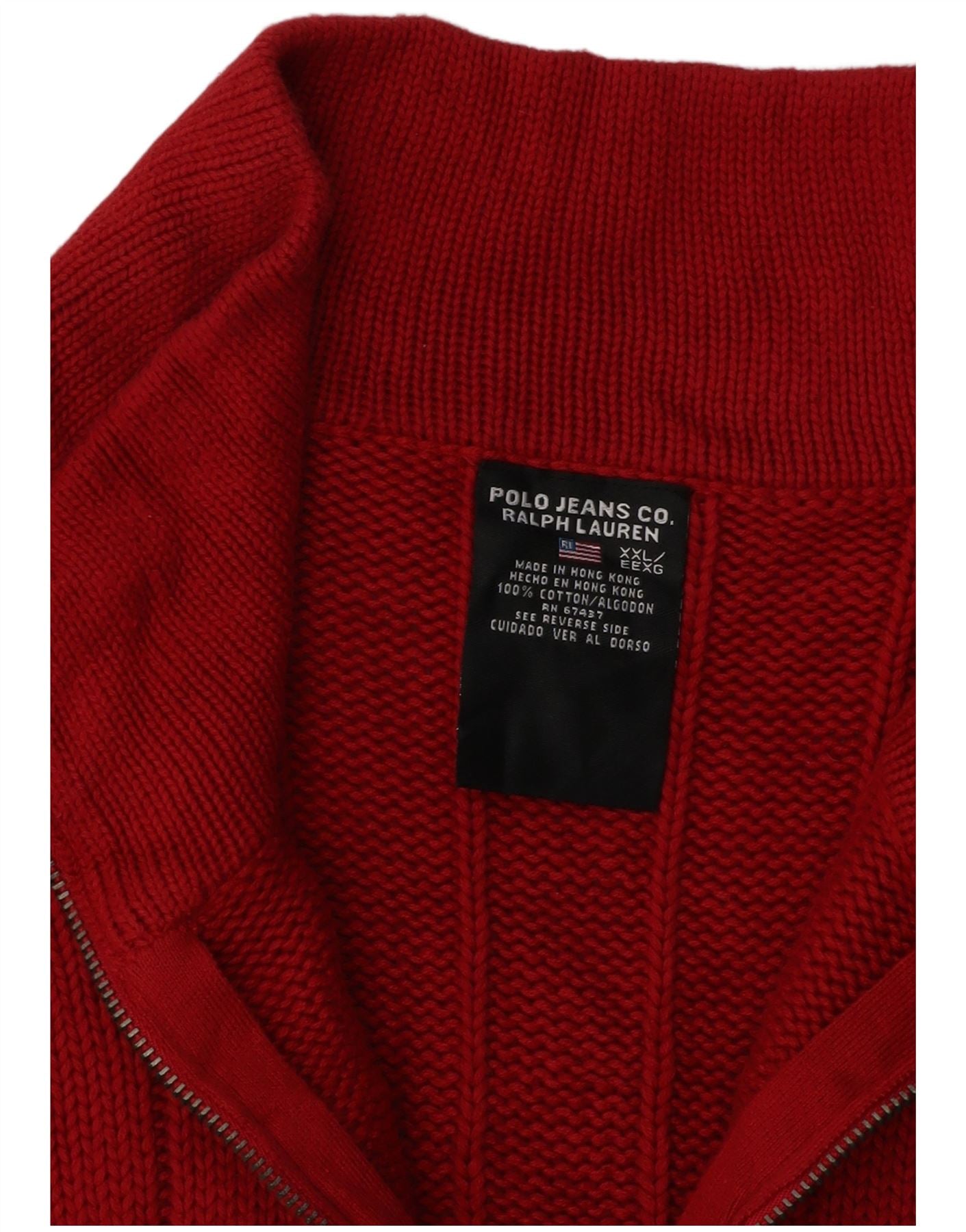 RALPH LAUREN Mens Zip Neck Jumper Sweater 2XL Red Cotton