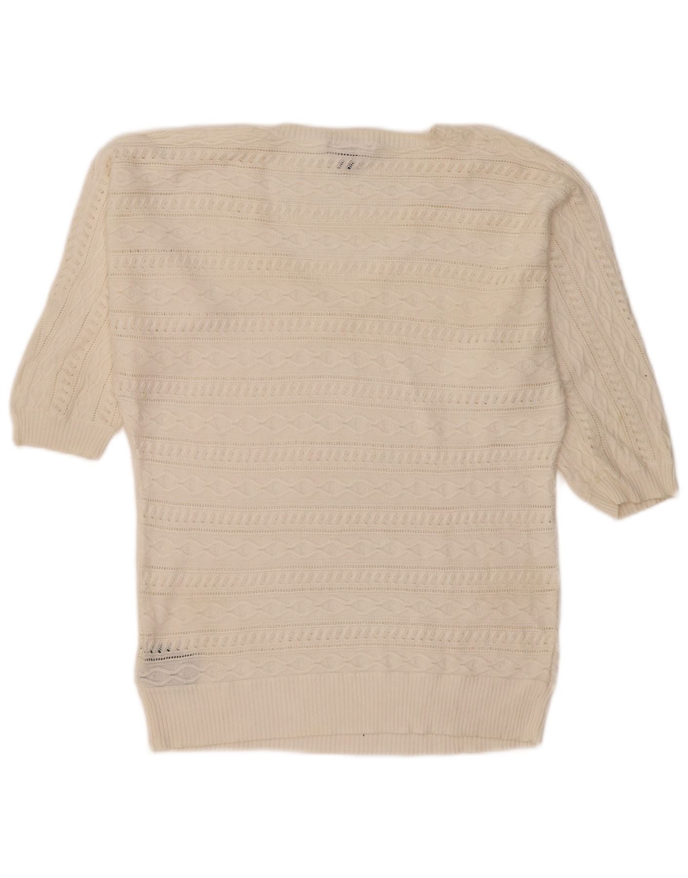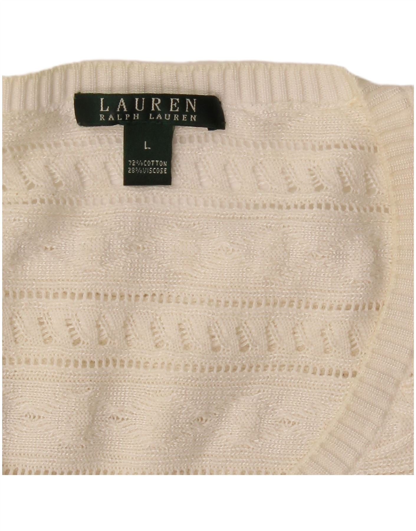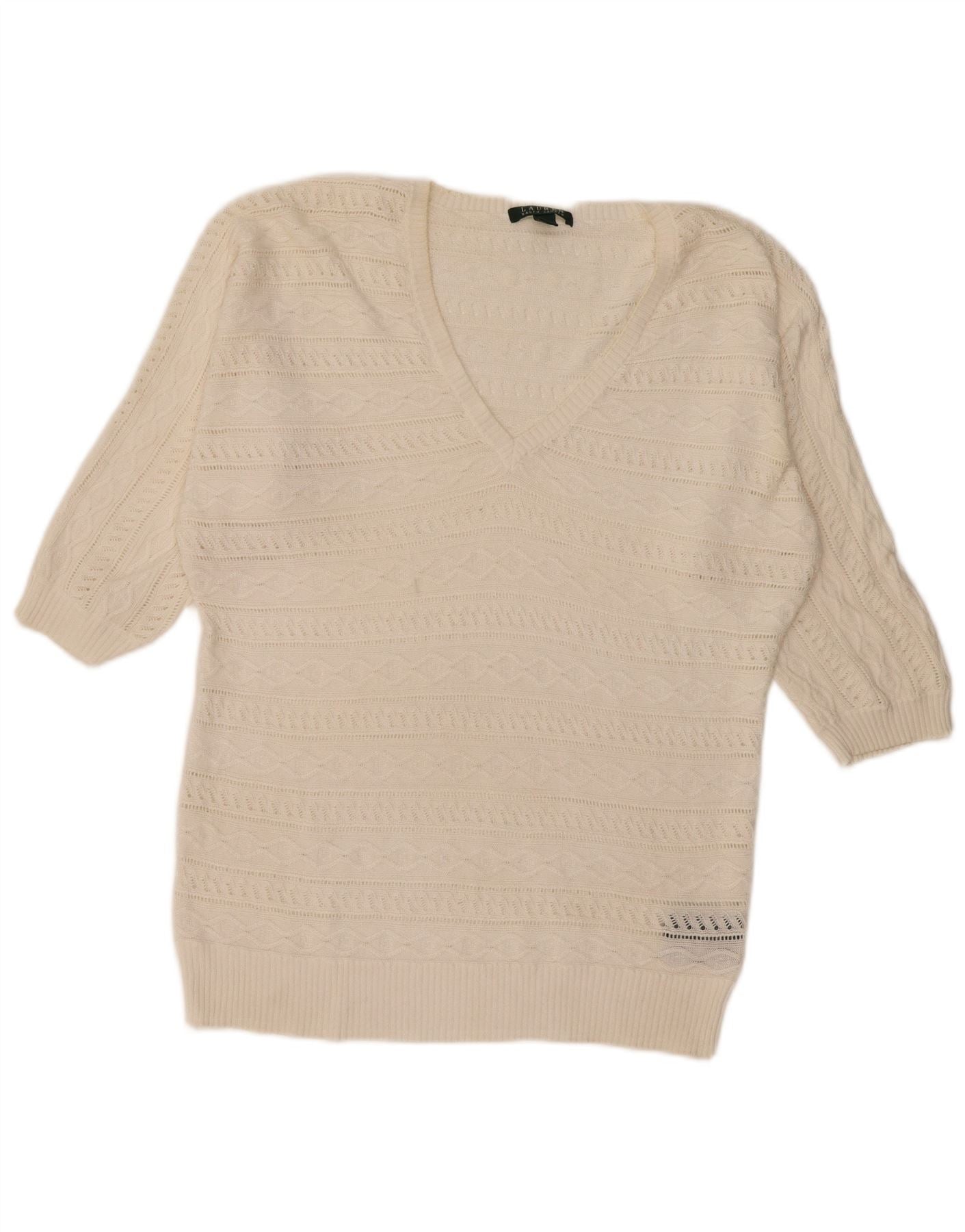 RALPH LAUREN Womens 3/4 Sleeve V-Neck Jumper Sweater UK 16 Large Off White