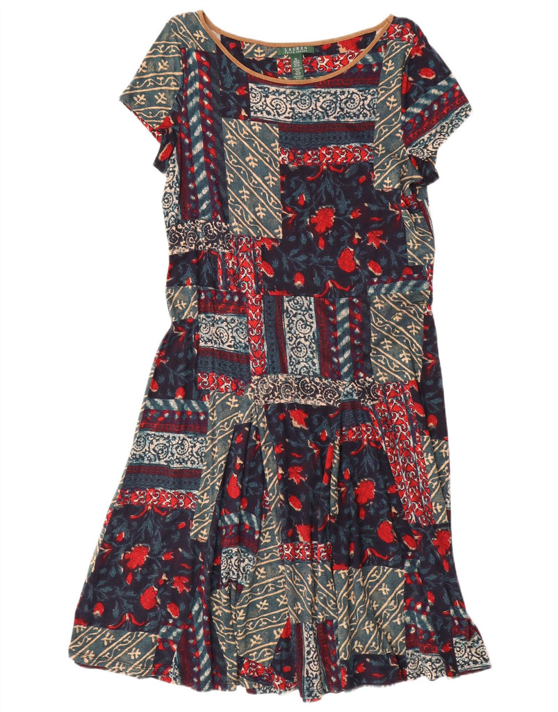 RALPH LAUREN Womens A-Line Dress UK 18 XL Navy Blue Floral Cotton