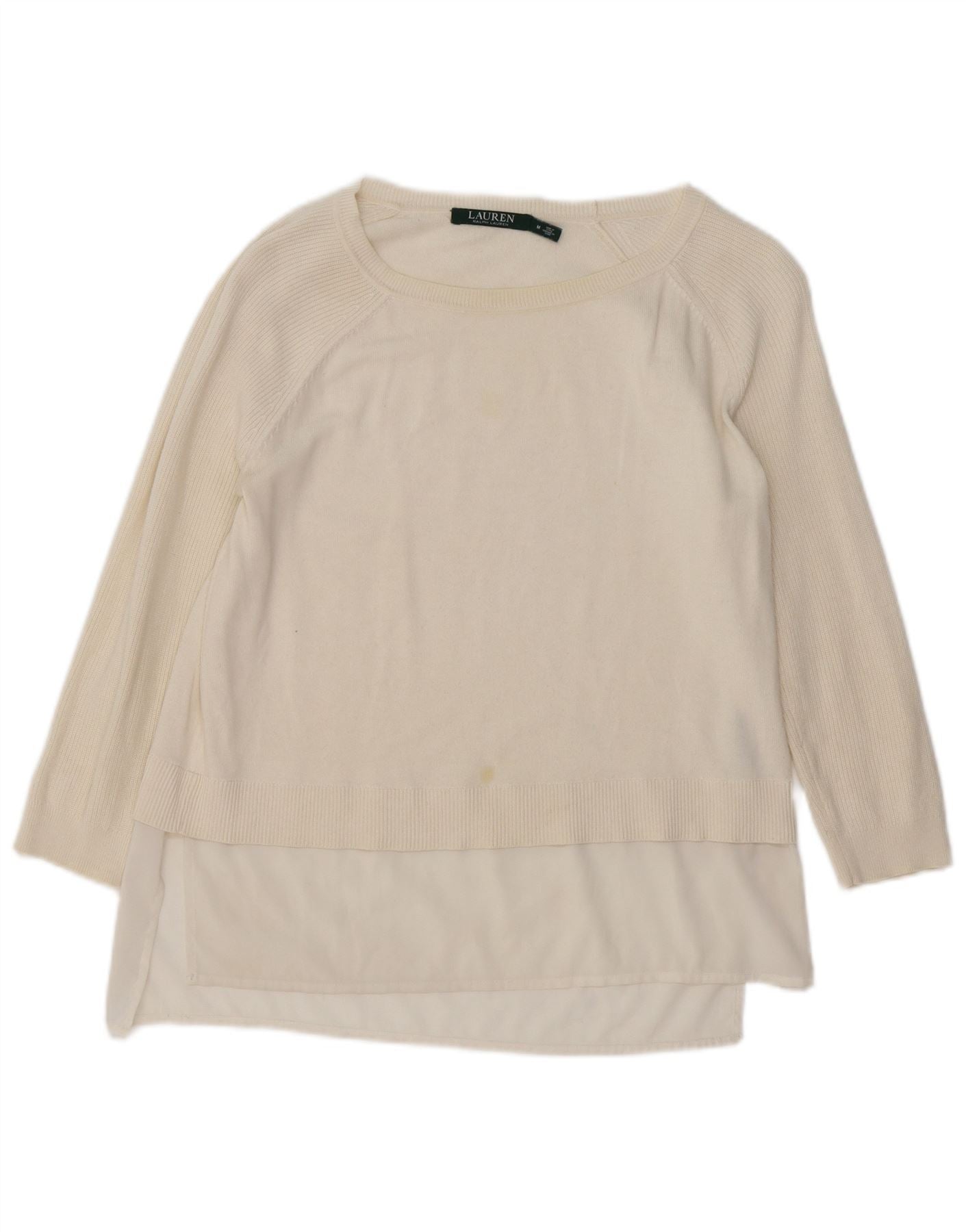 RALPH LAUREN Suéter tipo jersey con cuello barco para mujer Reino Unido 14 Mediano Blanco roto