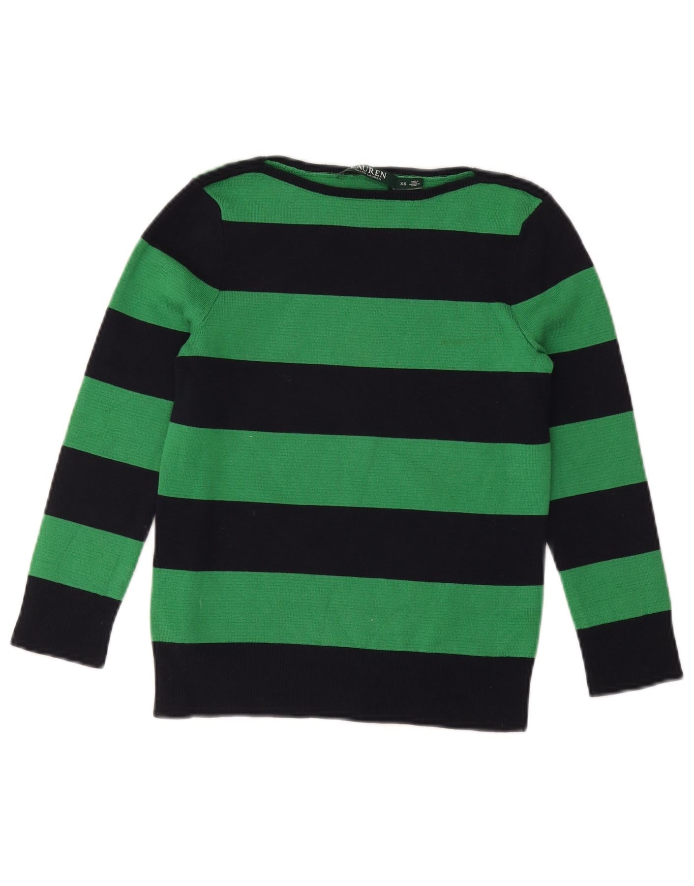 RALPH LAUREN Jersey con cuello barco para mujer UK 6 XS Algodón a rayas verdes