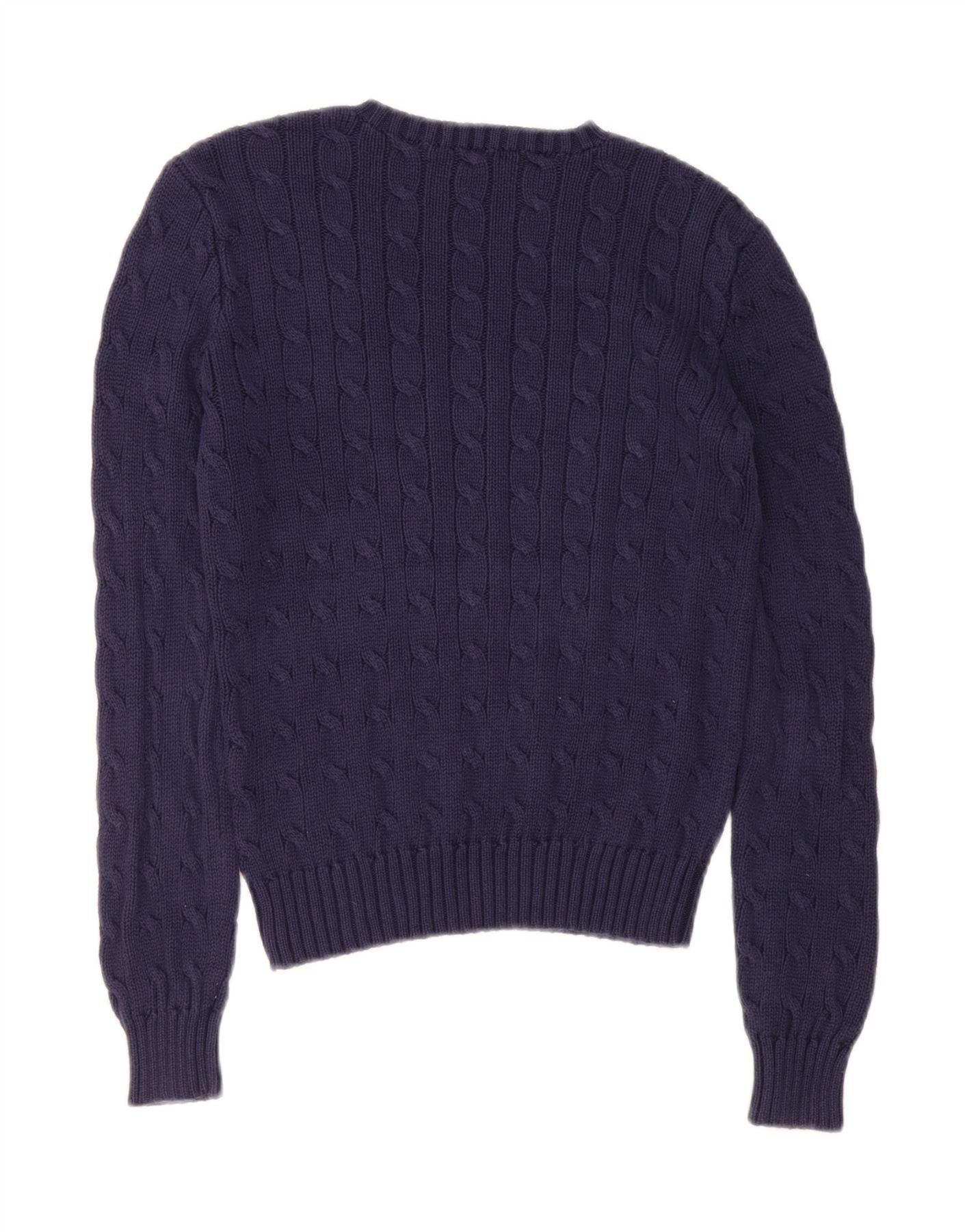RALPH LAUREN Womens Crew Neck Jumper Sweater UK 10 Small Navy Blue Cotton