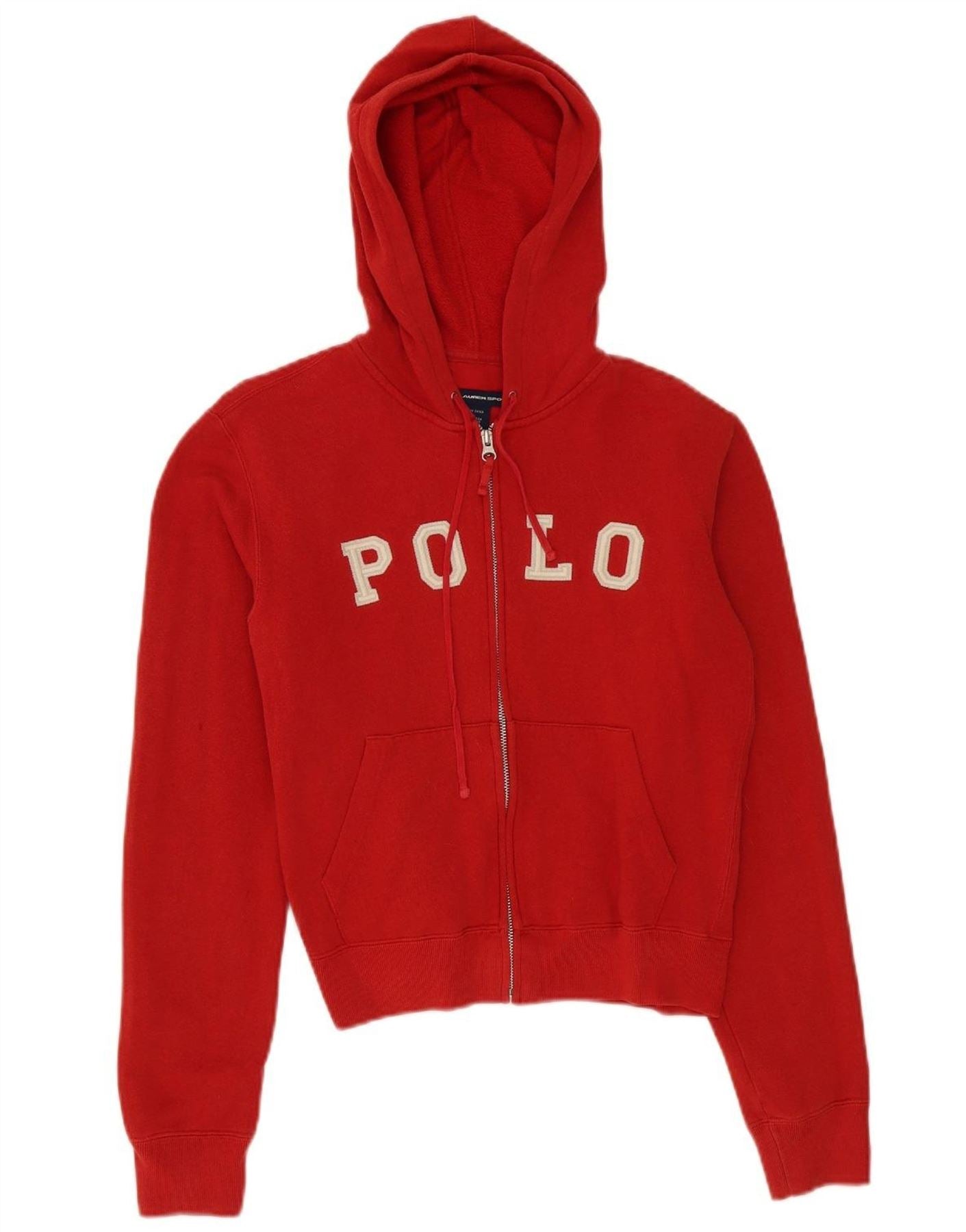 RALPH LAUREN Womens Crop Graphic Zip Hoodie Sweater UK 14 Medium Red
