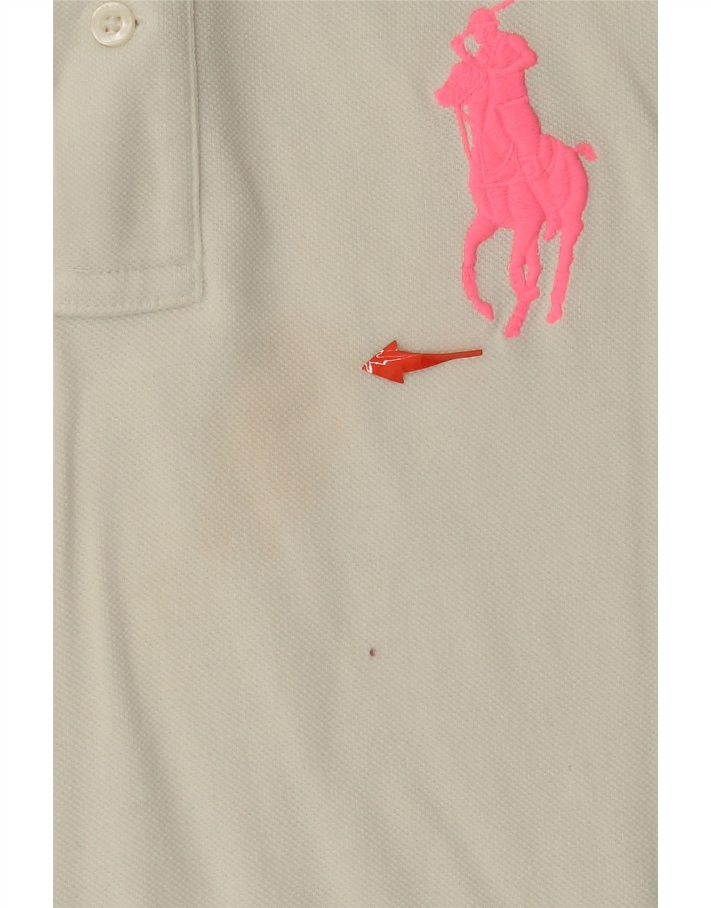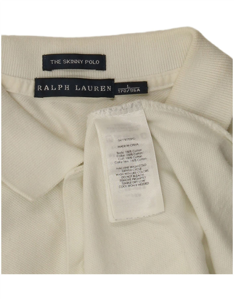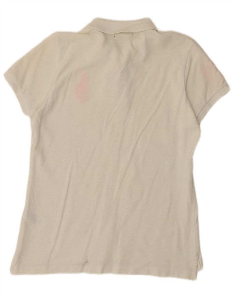 RALPH LAUREN Womens Graphic Skinny Polo Shirt UK 14 Large White Cotton