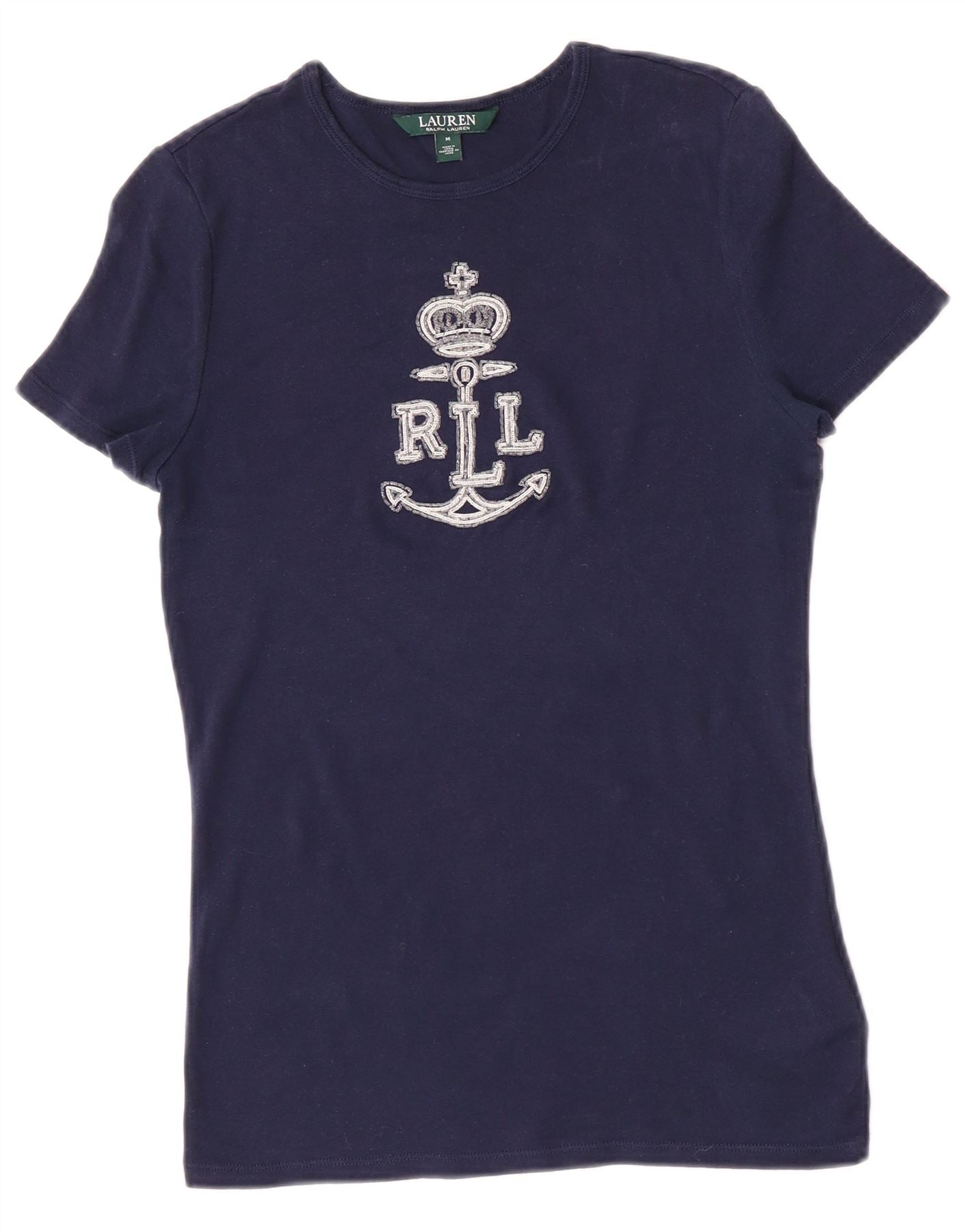 Ralph Lauren Camiseta gráfica para mujer Top UK 12 Medium Azul marino Algodón